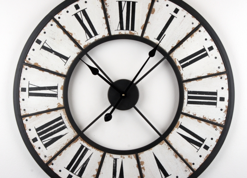 Originálne nástenné hodiny s otlčeným vzhľadom 70cm majú kovový rám a stred ciferníku nemá výplň. Ručičky tak behajú akoby priamo po stene.