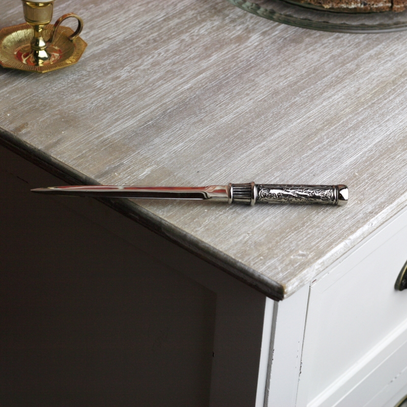 Otvárač na listy s ozdobnou rukoväťou 20cm je štýlovým doplnkom pracovného stola. Predtým často používaný malý nožík pre ľahké otváranie doručenej pošty sa môže stať súčasťou i Vašej pracovne či kancelárie.