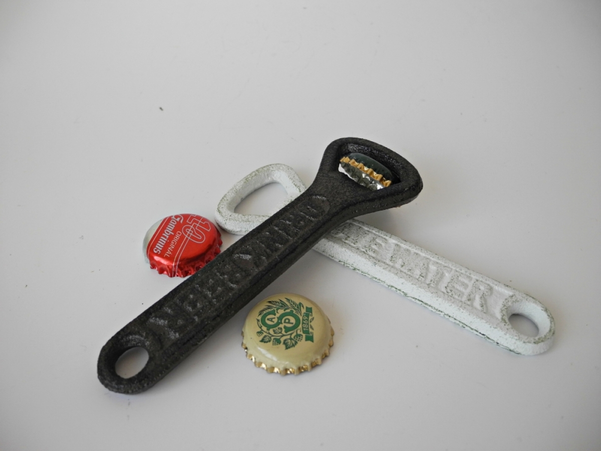 Otvárač na pivo je vyrobený z liatiny a vhodný pre všetky štandardné typy jednorazových uzáverov.