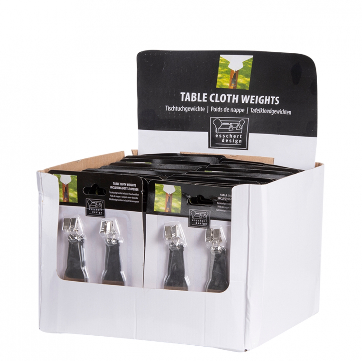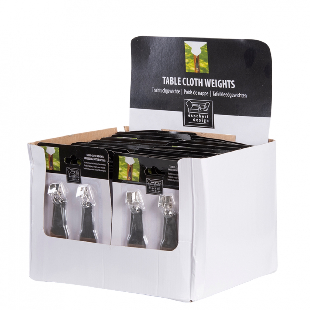 Otvárač na pivo a závažia na obrus.