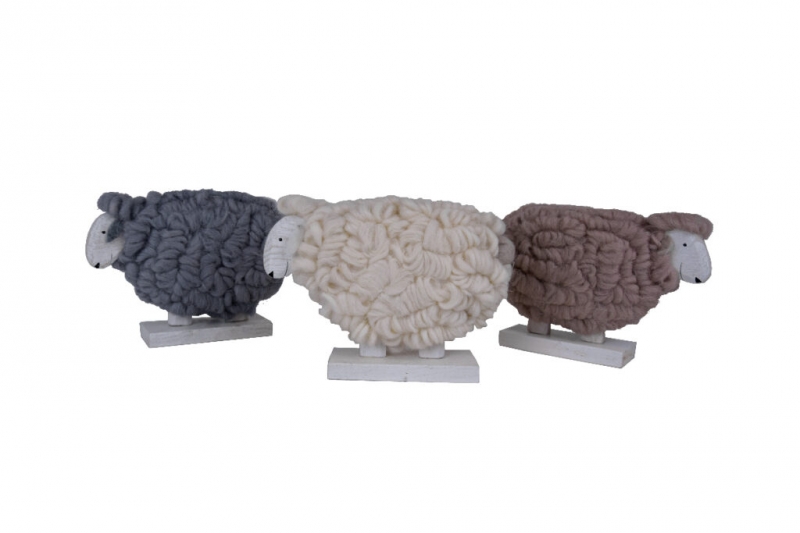 Ovce je na drevenom podstavci v troch rôznych farbách (šedá, biela, béžová).