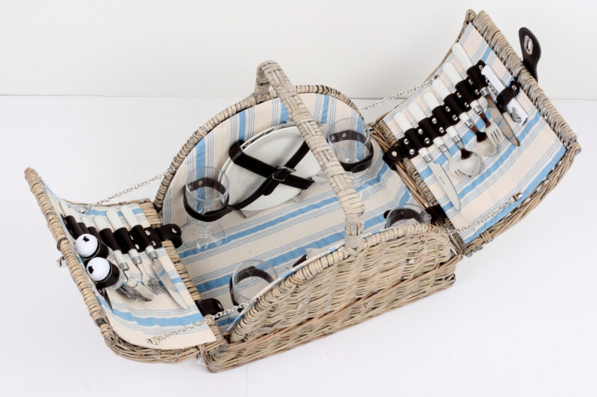 Piknikový kôš s modrými prúžky pre 2 osoby 29x42x31cm