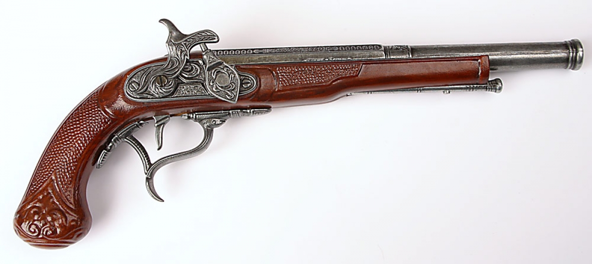 Pištoľ, ktorá je nefunkčnou replikou historického kúsku. Je vhodná najmä na dekoráciu, ale využitie môže nájsť aj ako rekvizita v divadelných predstaveniach, či na karnevaloch.