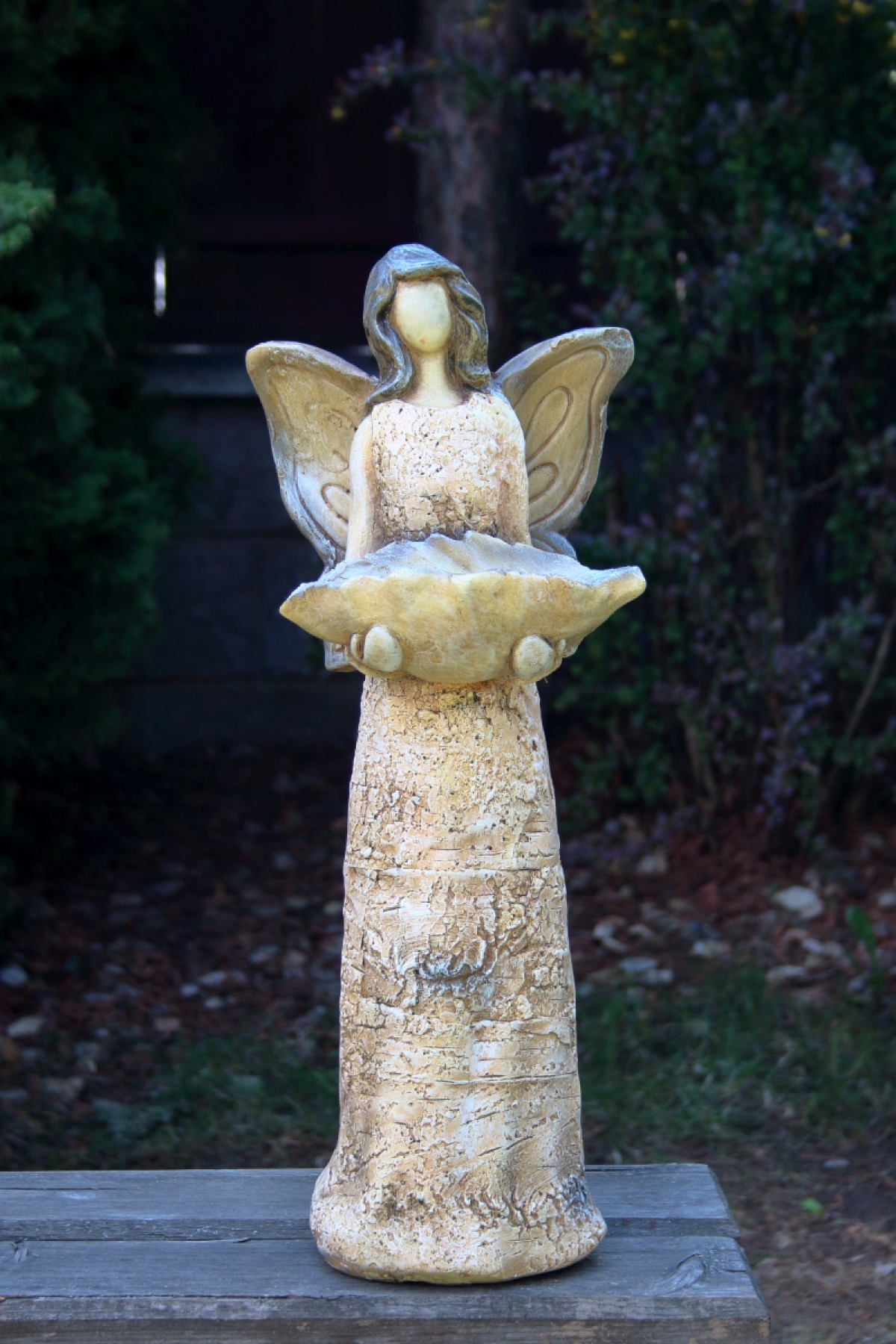 Pítko pre vtáčiky v podobe anjelika na záhradu alebo terasu