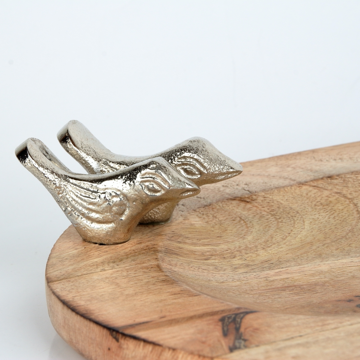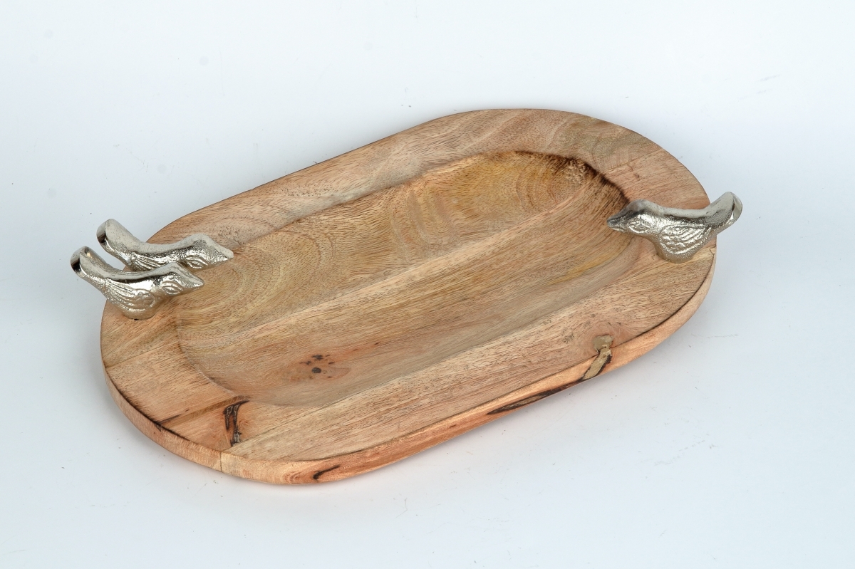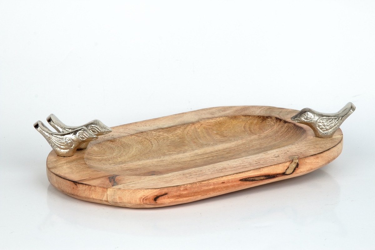 Ručne vyrábané menšie drevené pítko pre vtáky, originálne zdobené tromi kovovými vtáčikmi, bude šperkom v každej záhrade, či na terase. Vyniká na nej najmä krásna kresba dreva mangovníka.
