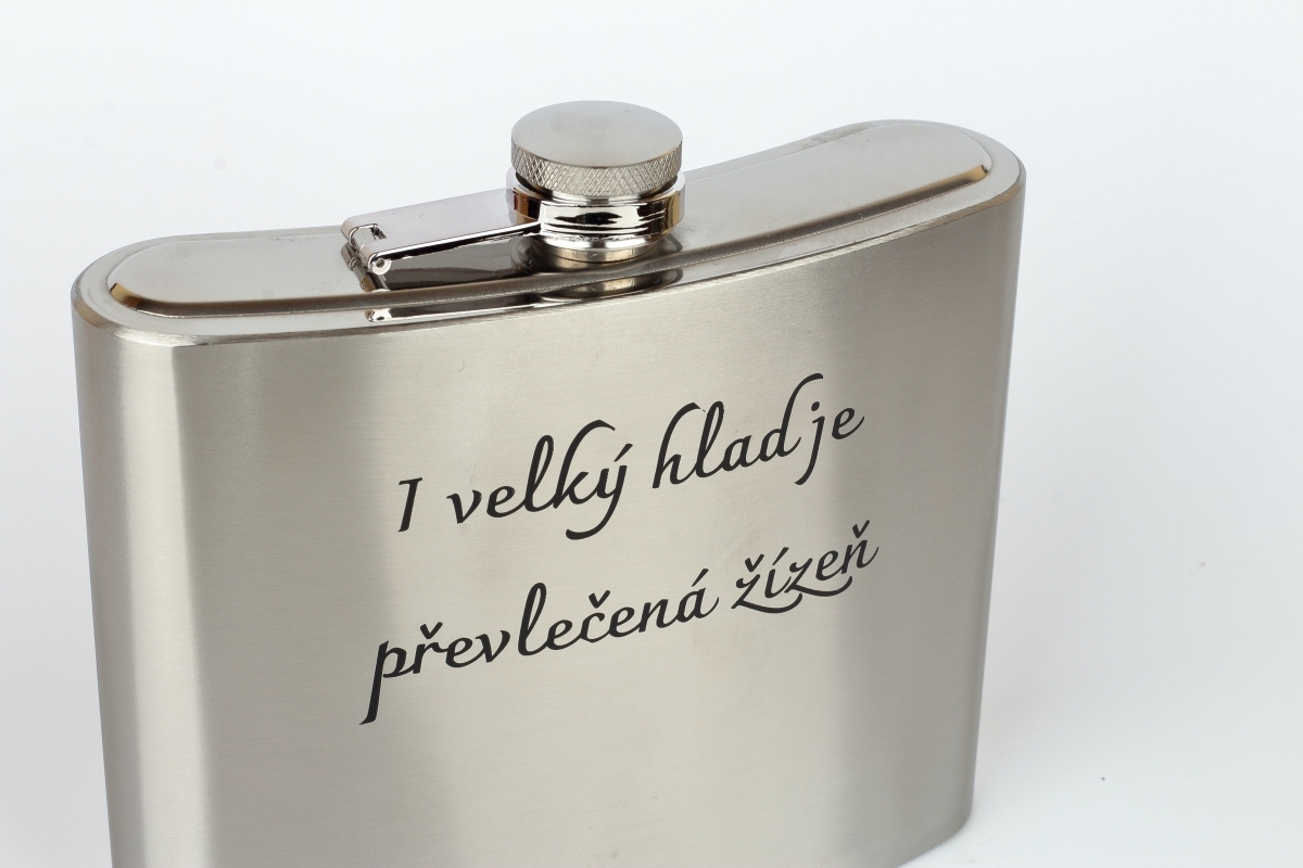 Placatka na alkohol s nápisom - Aj veľký hlad je prezlečený smäd