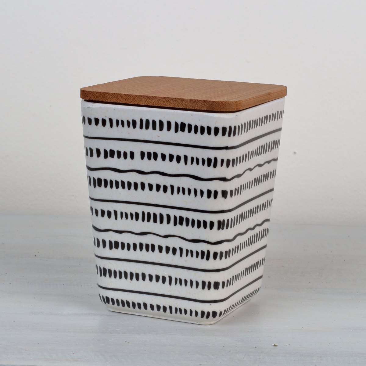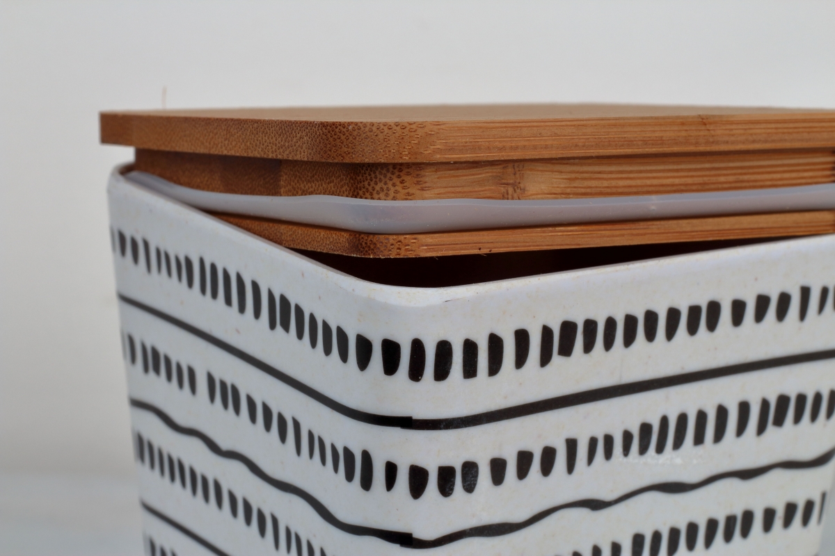Plastová dóza na potraviny s bambusovým vekom 15x11x11cm na akékoľvek suroviny, ktoré potrebujete v kuchyni prakticky uložiť. Dóza môže slúžiť napríklad na kávu, cukor alebo soľ.