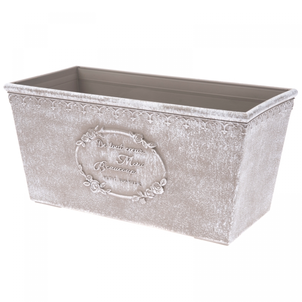 Plastový truhlík má na prvý pohľad vzhľad klasického plechového truhlíka s patinou, je ale z plastu, takže vám časom rozhodne nezrezne! Krásny vintage štýl sa bude hodiť do každého interiéru aj von na záhradu.