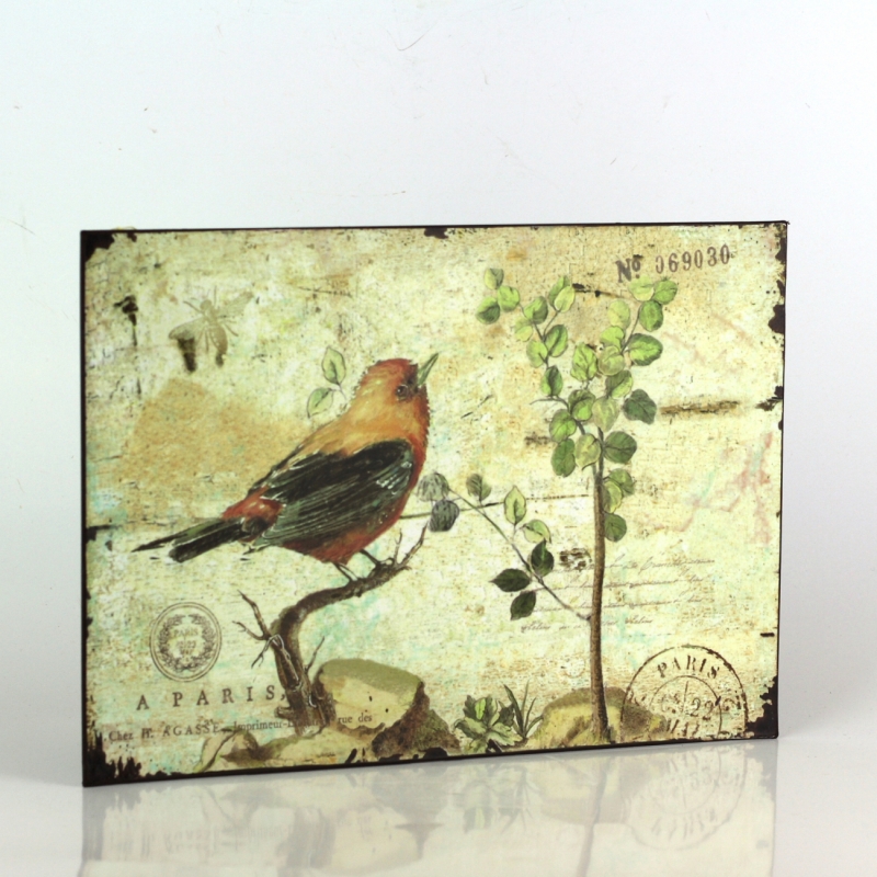 Plechová ceduľa červený vtáčik 19x27cm