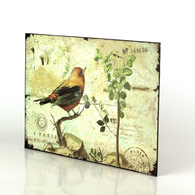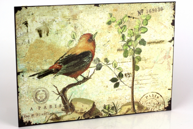 Plechová ceduľa patrí do kolekcie ceduliek s vtáčikmi. V rovnakom štýle tak nájdete v ponuke ešte ďalšie plechové cedule.