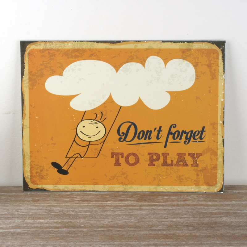 Plechová ceduľa do detskej izby Dont forget to play 30x40cm