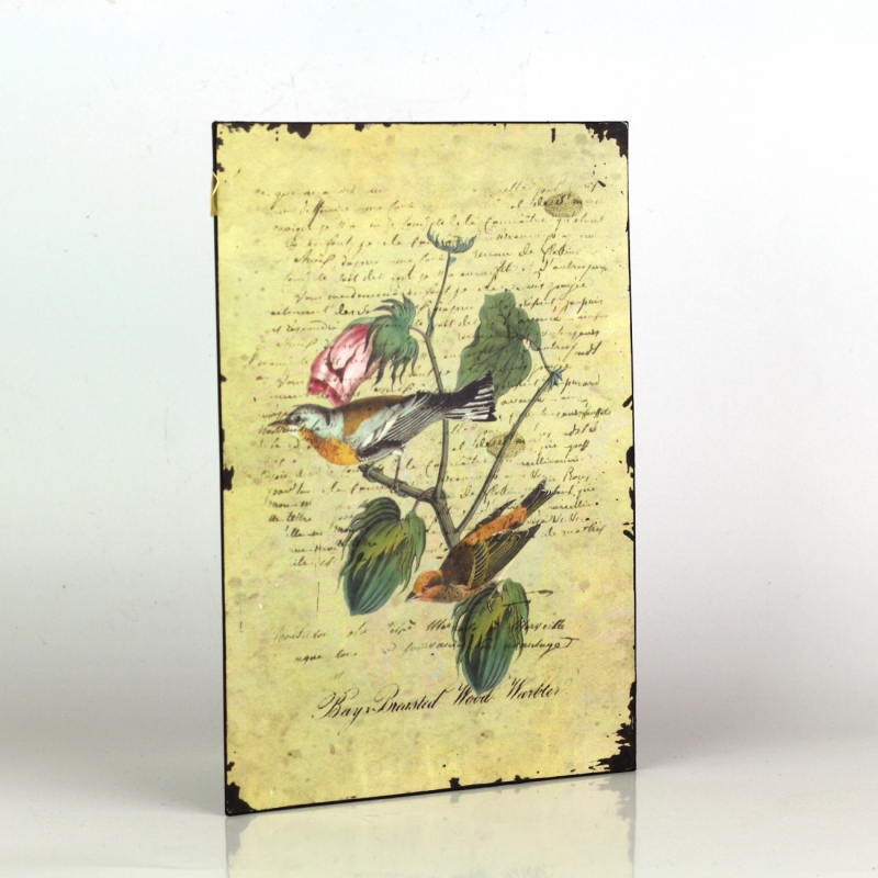 Plechová ceduľa patrí do kolekcie ceduliek s vtáčikmi. V rovnakom štýle tak nájdete v ponuke ešte ďalšie plechové cedule.