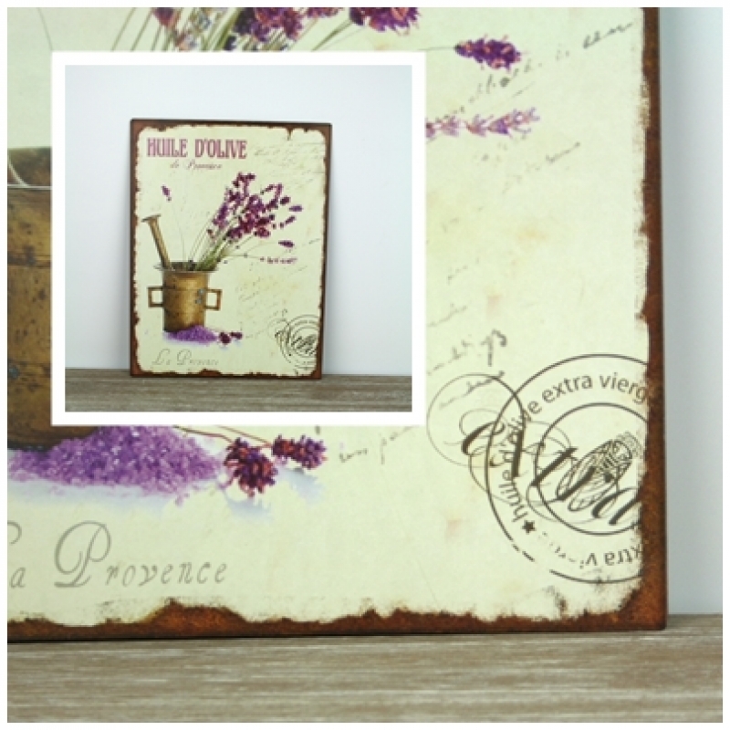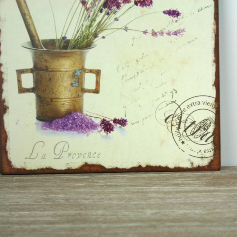 Plechová ceduľa La Provence 33x25cm , ktoré k dokonalosti chýba už len to, že nevonia po levanduľu. Už len samotný pohľad na zväzok levanduľa pohladí po duši.