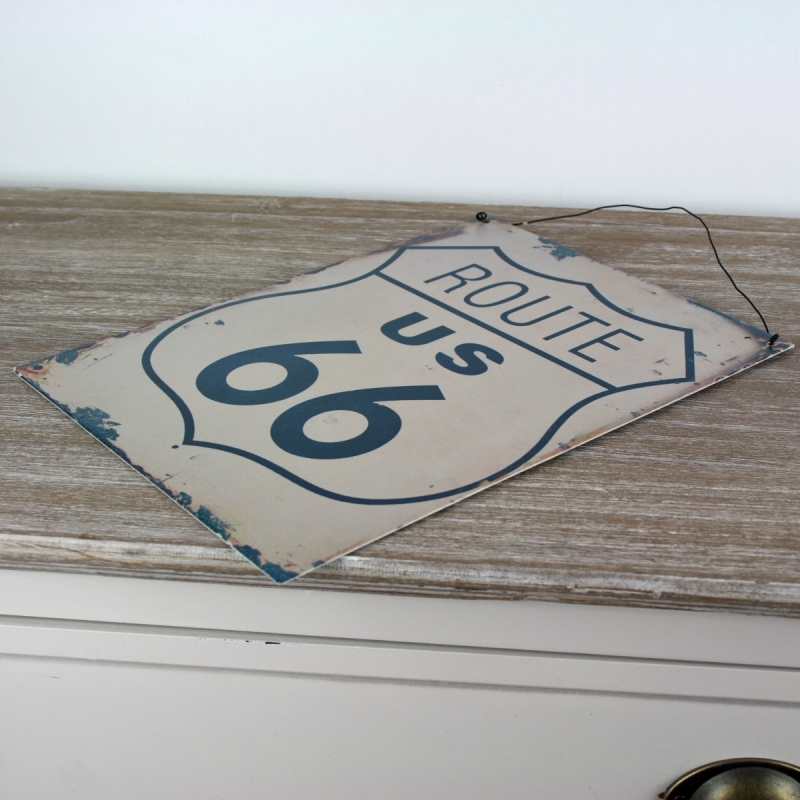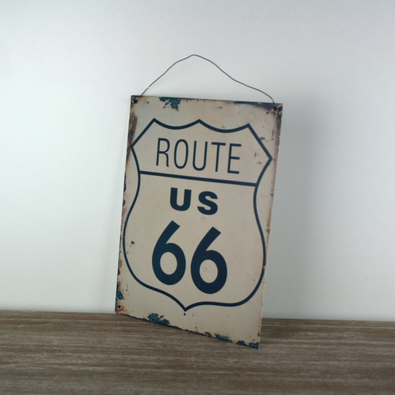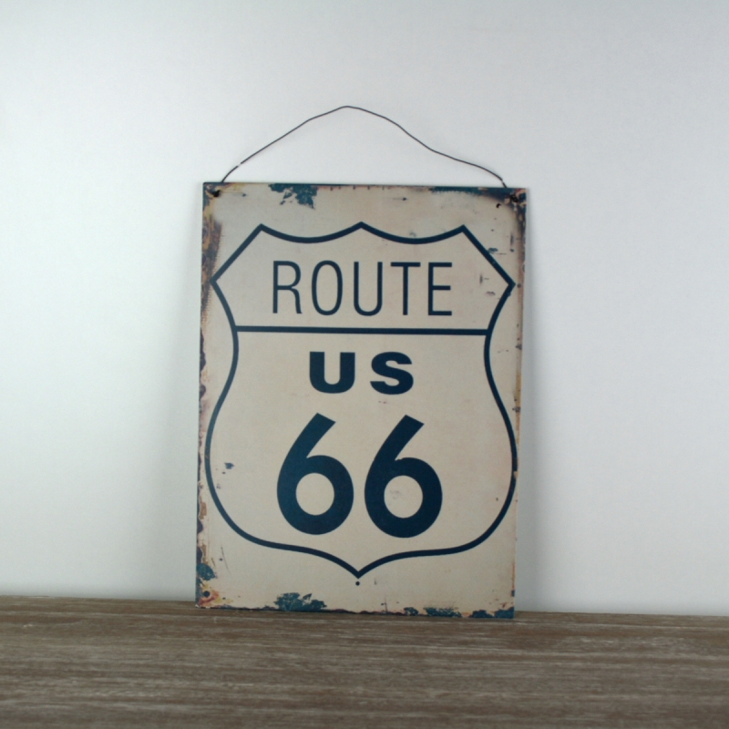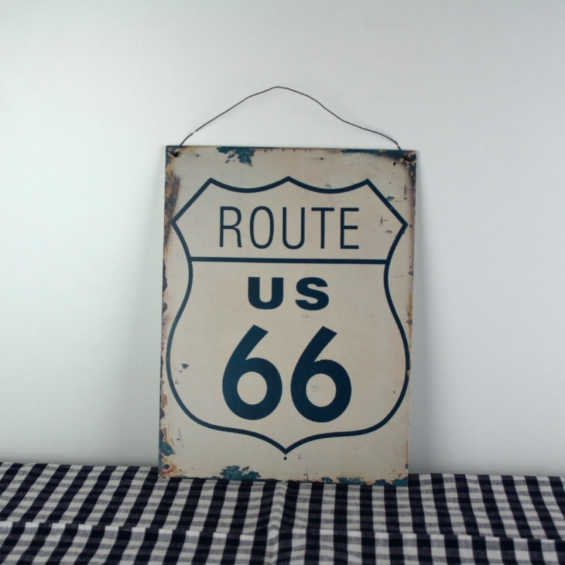 Plechová ceduľa Route US 66 24x32cm na zavesenie na stenu alebo na postavenie na komodu.