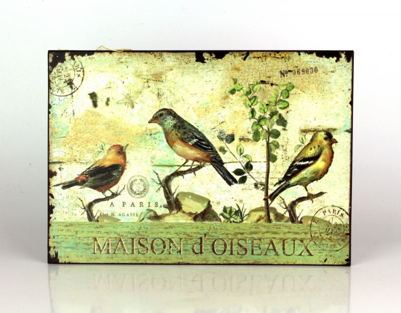 Plechová ceduľa patrí do kolekcie ceduliek s vtáčikmi. V rovnakom štýle tak nájdete v ponuke ešte ďalšie plechové cedule.
