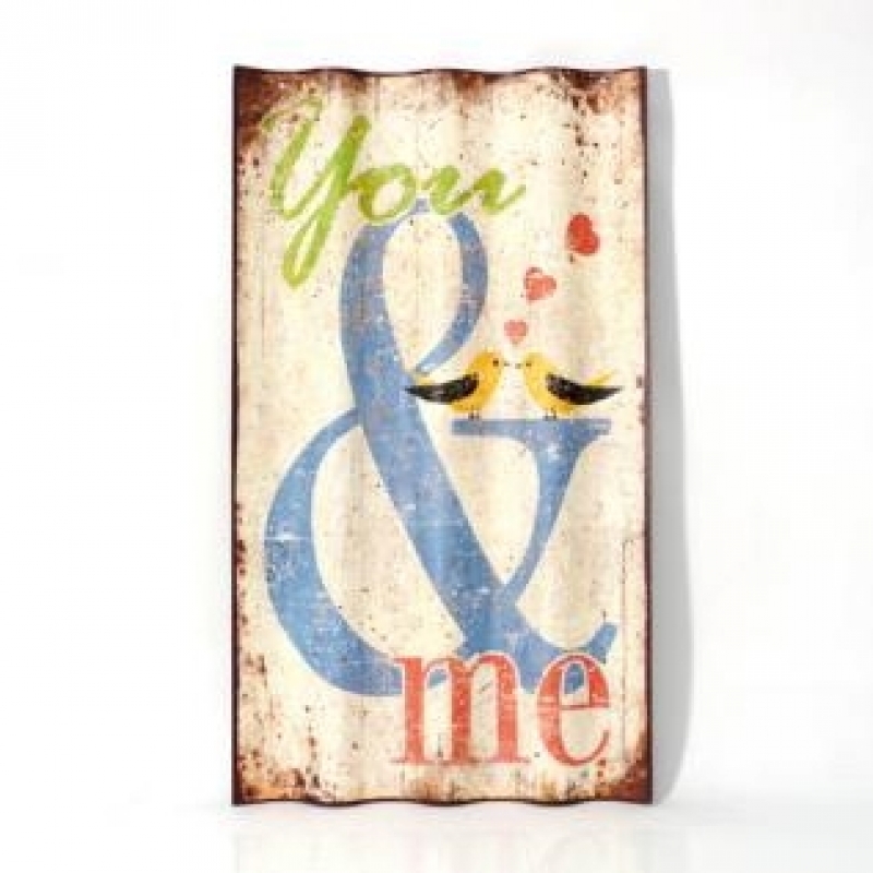Plechová ceduľa s anglickým nápisom "You & me" alebo "Ty a ja" poteší každú romantickú dušu.