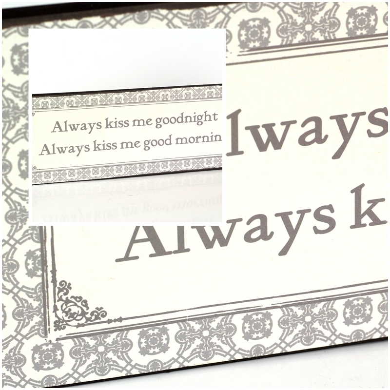 Plechová ceduľa s nápisom "Always kiss me goodnight ... Always kiss me good morning".