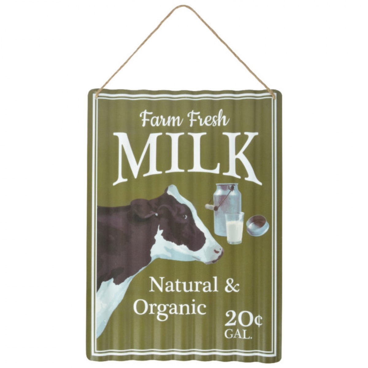 Plechová ceduľa s nápisom čerstvé mlieko z farmy je štýlovou dekoráciou do kuchyne alebo do retro kaviarne.