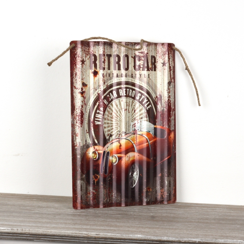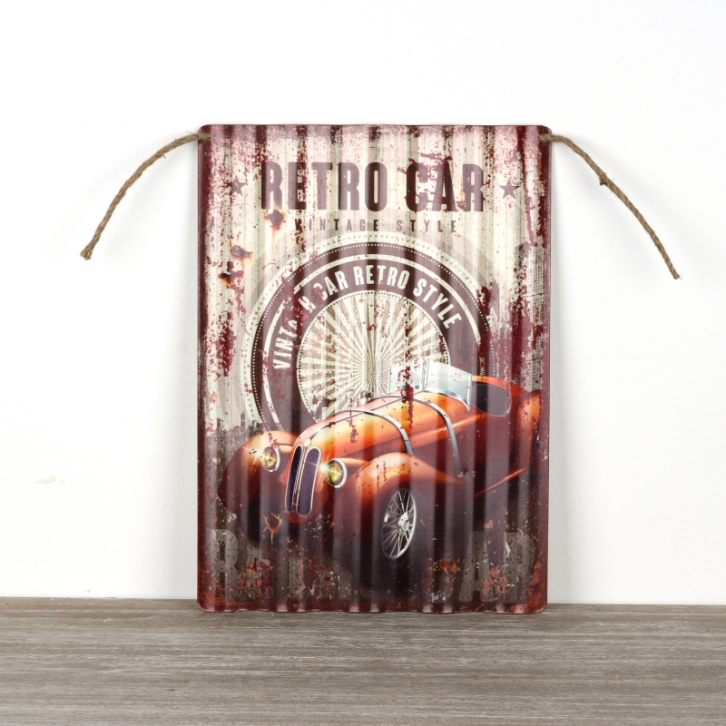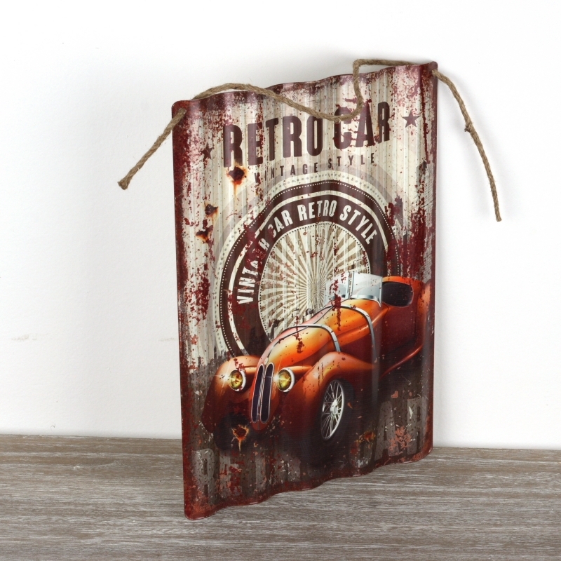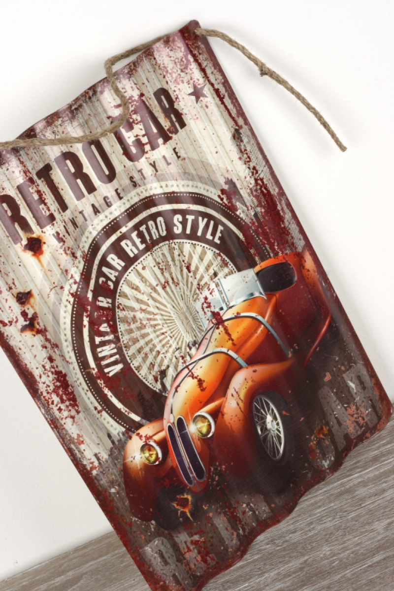 Plechová ceduľa RETRO CAR 40x29cm pre oživenie interiérov pánskych pracovní.