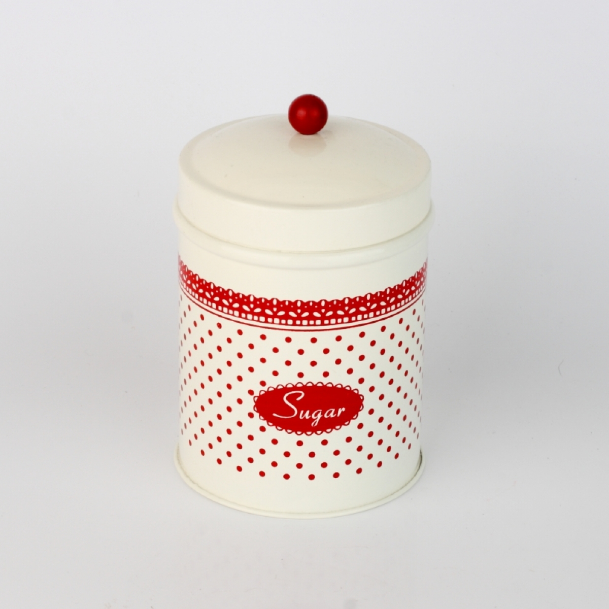 Plechová dóza na cukor červená čipka 16x10cm