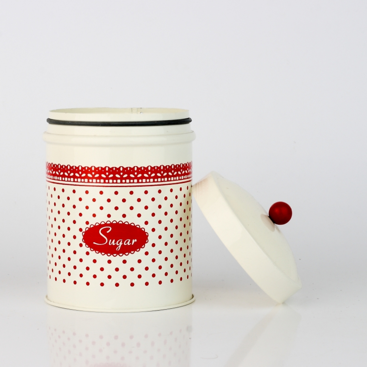 Plechová dóza na cukor červená čipka 16x10cm bude Vašej kuchyni pristane!