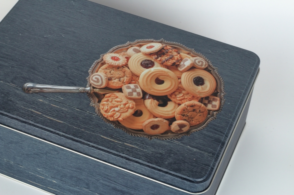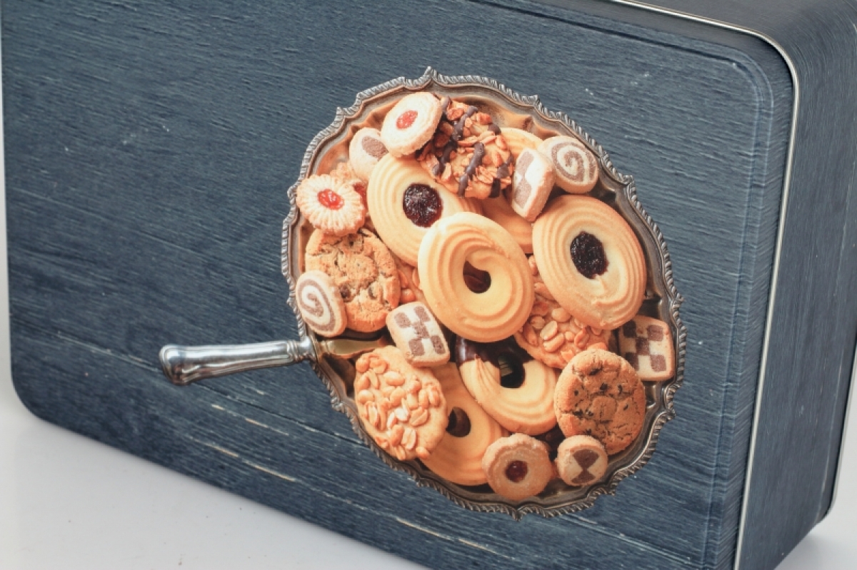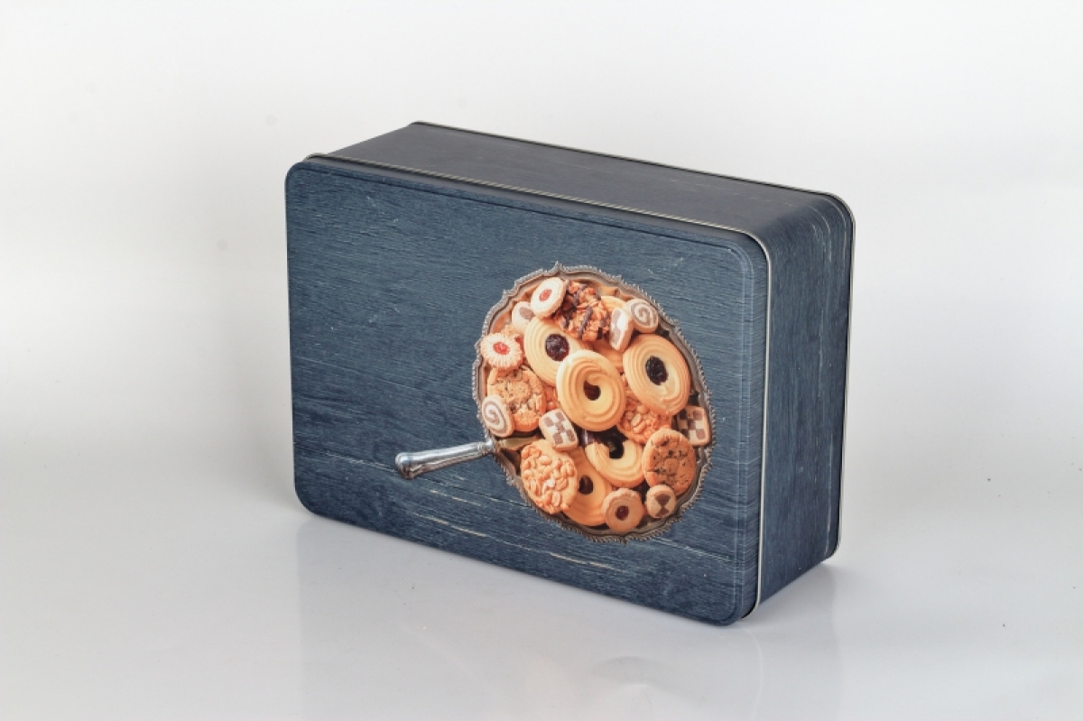 Plechová dóza retro s potlačou. Vhodná napríklad na sušienky, alebo kakao.