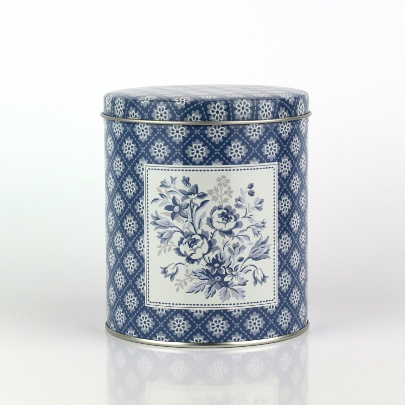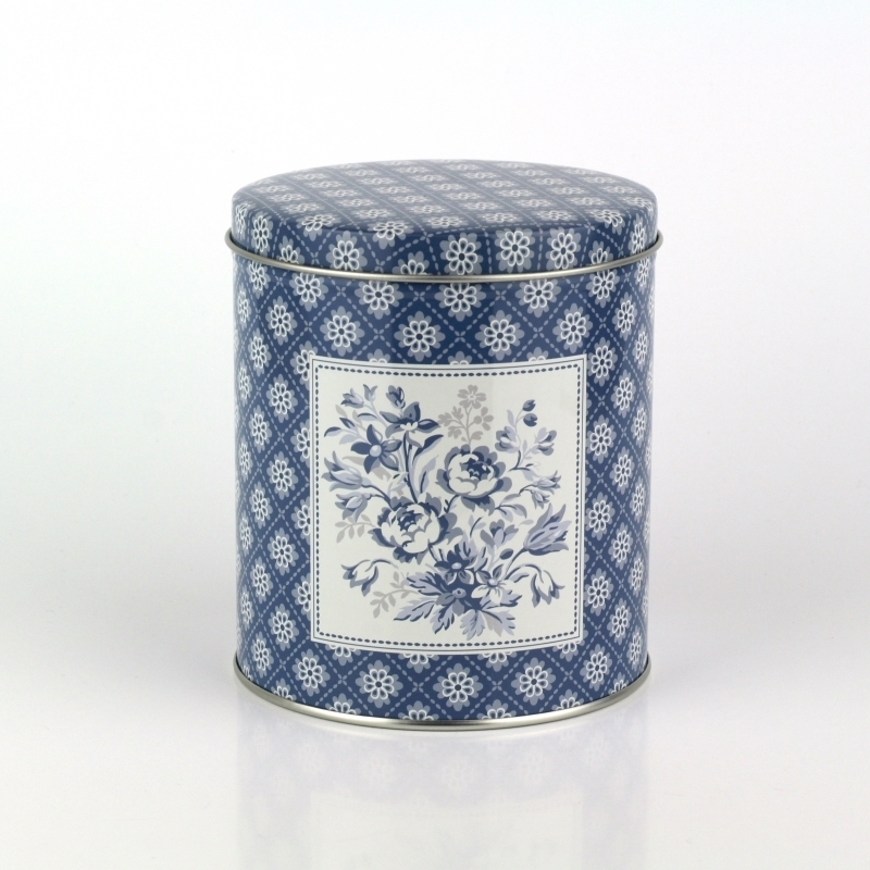 Plechová guľatá dóza Sadie blue 10cm v prekrásnej bielo modrom s kvetinovým motívom. Dóza je všestranný kuchynský pomocník. Môžete do nej ukryť sladkosti pre deti, upečené sušienky alebo akékoľvek potraviny.