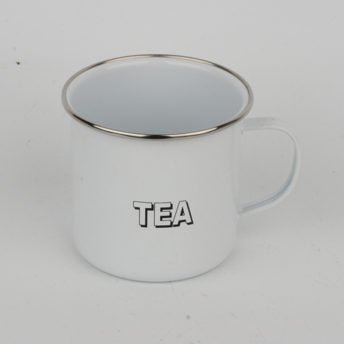 Plechový hrnček biely Tea 9x10cm bude skvelým spoločníkom pre chvíľku odpočinku. Uvarte si šálku obľúbeného čaju a relaxujte.