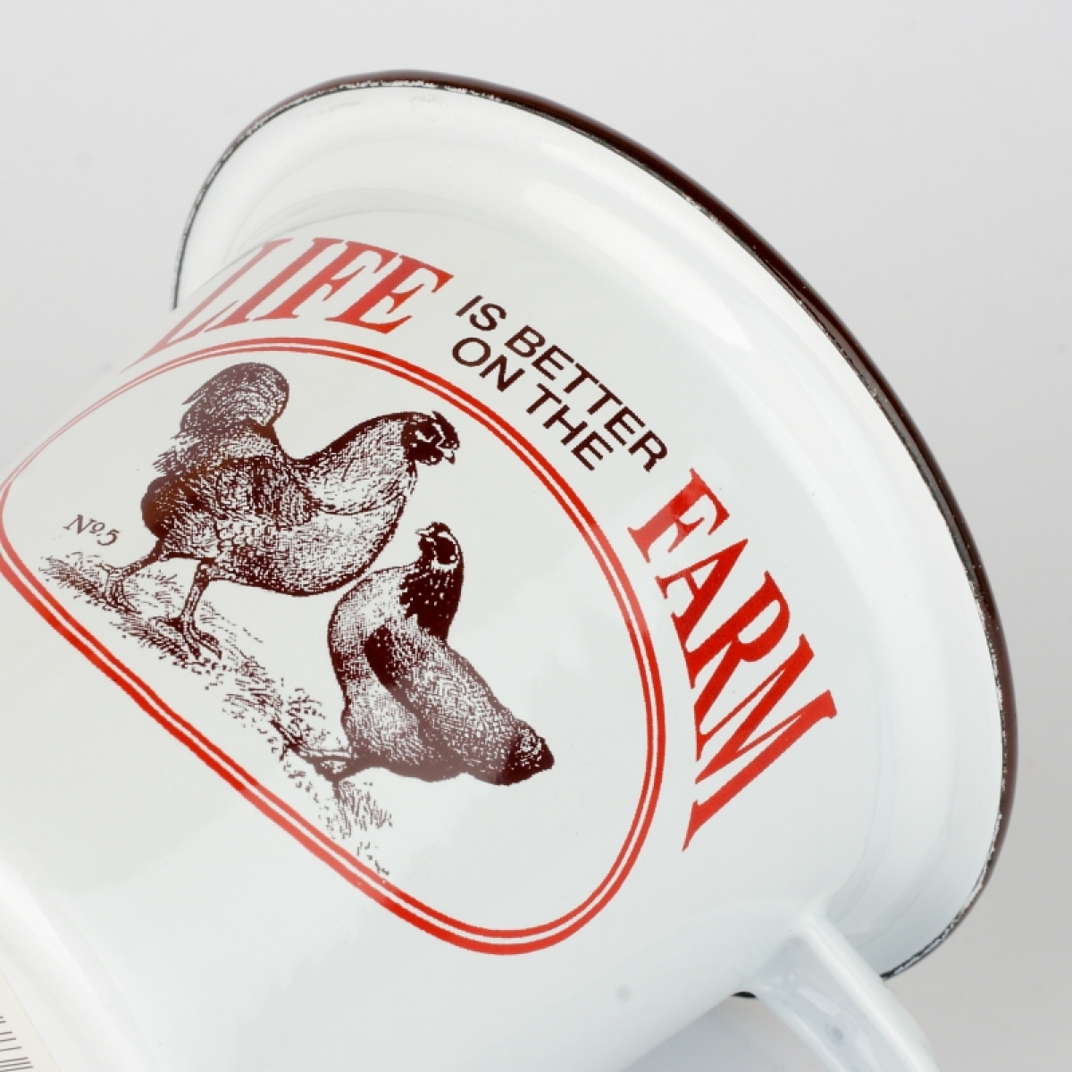 Plechový hrnček s kohútom bude krásnym dekoratívnym prvkom každej kuchyne.