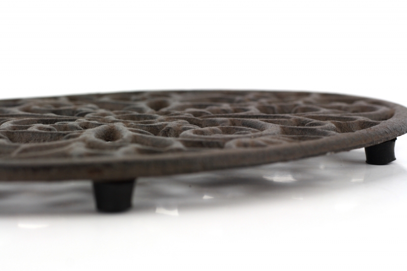 Podložka pod hrniec je vyrobená z kvalitnej odolnej liatiny. Na spodnej strane nožičiek má gumové krytky, ktoré bránia pred poškriabaním povrchu.