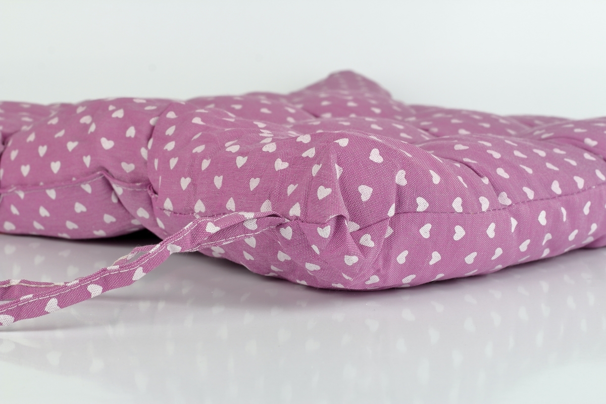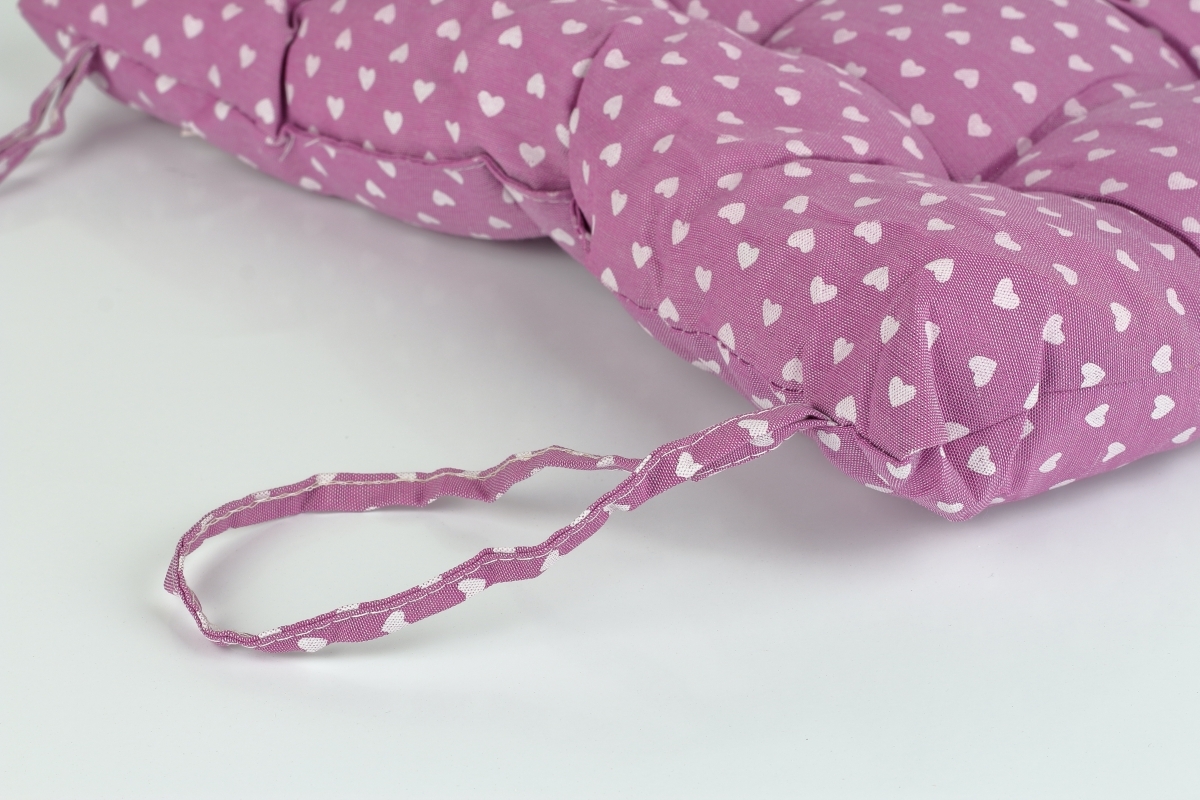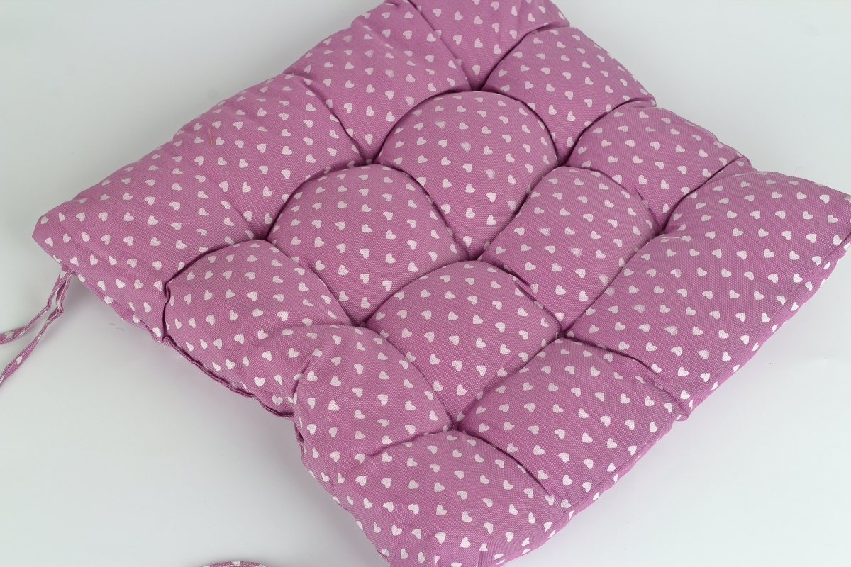 Podsedák 40x40 cm vo fialovej farbe so srdiečkami