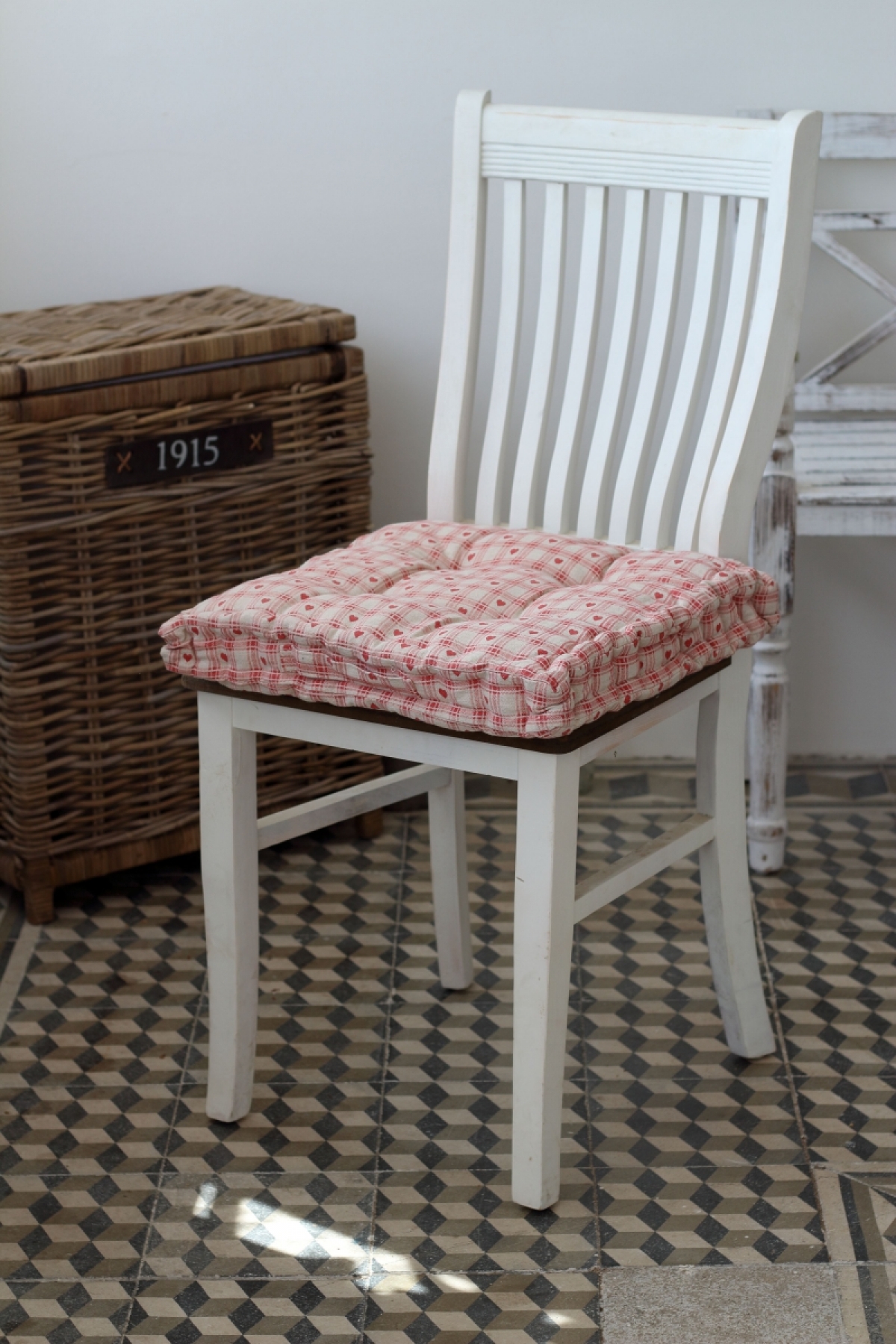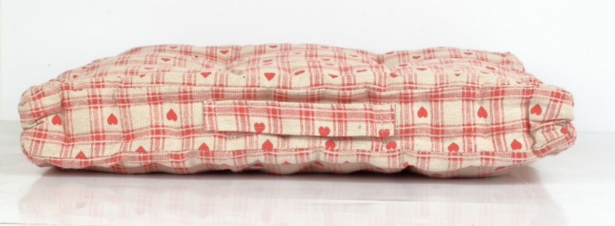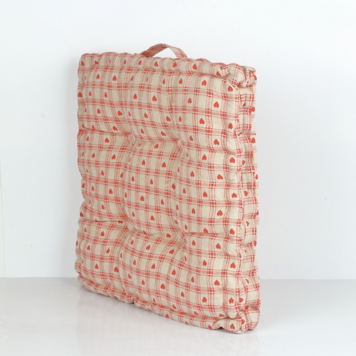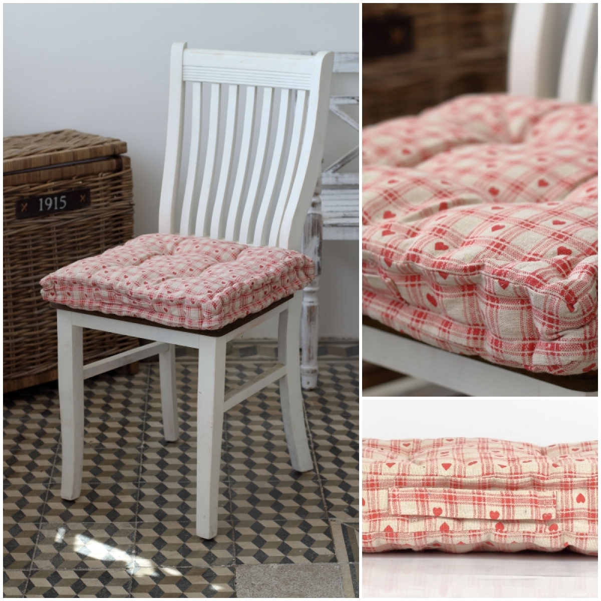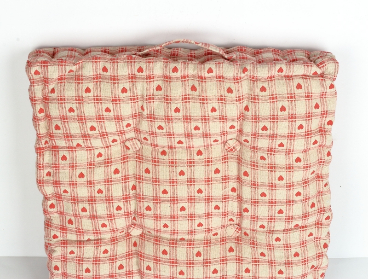 Podsedák na stoličku červené srce 45x45cm perfektne doladia interiér s vidieckym nádychom a hosťom ponúknuť pohodlné sedenie.