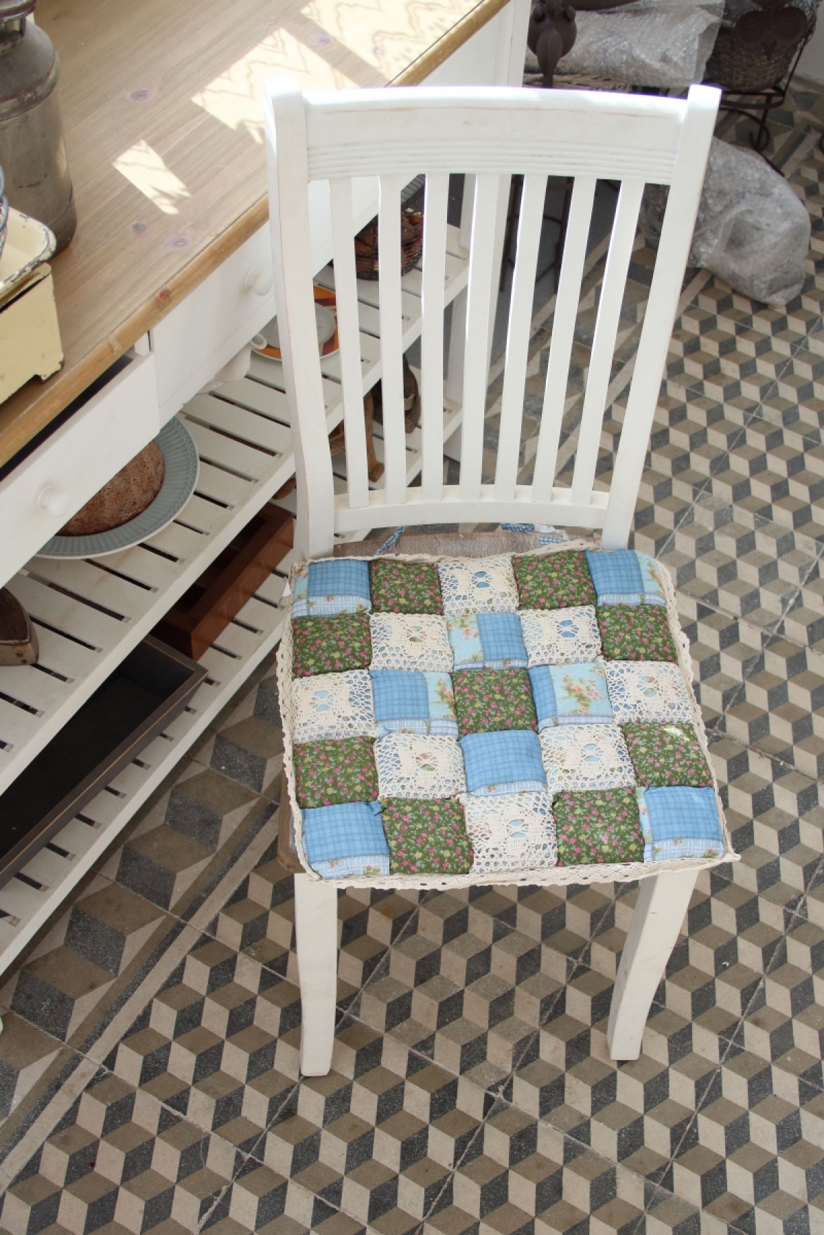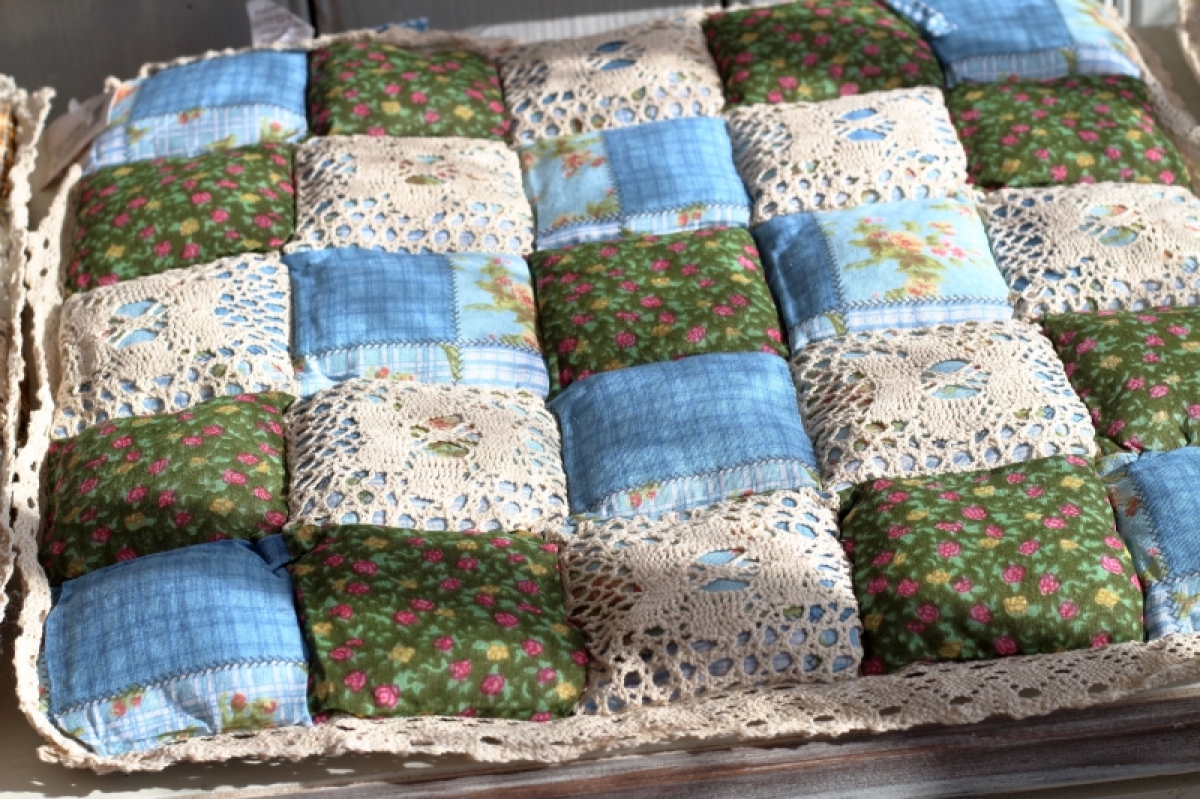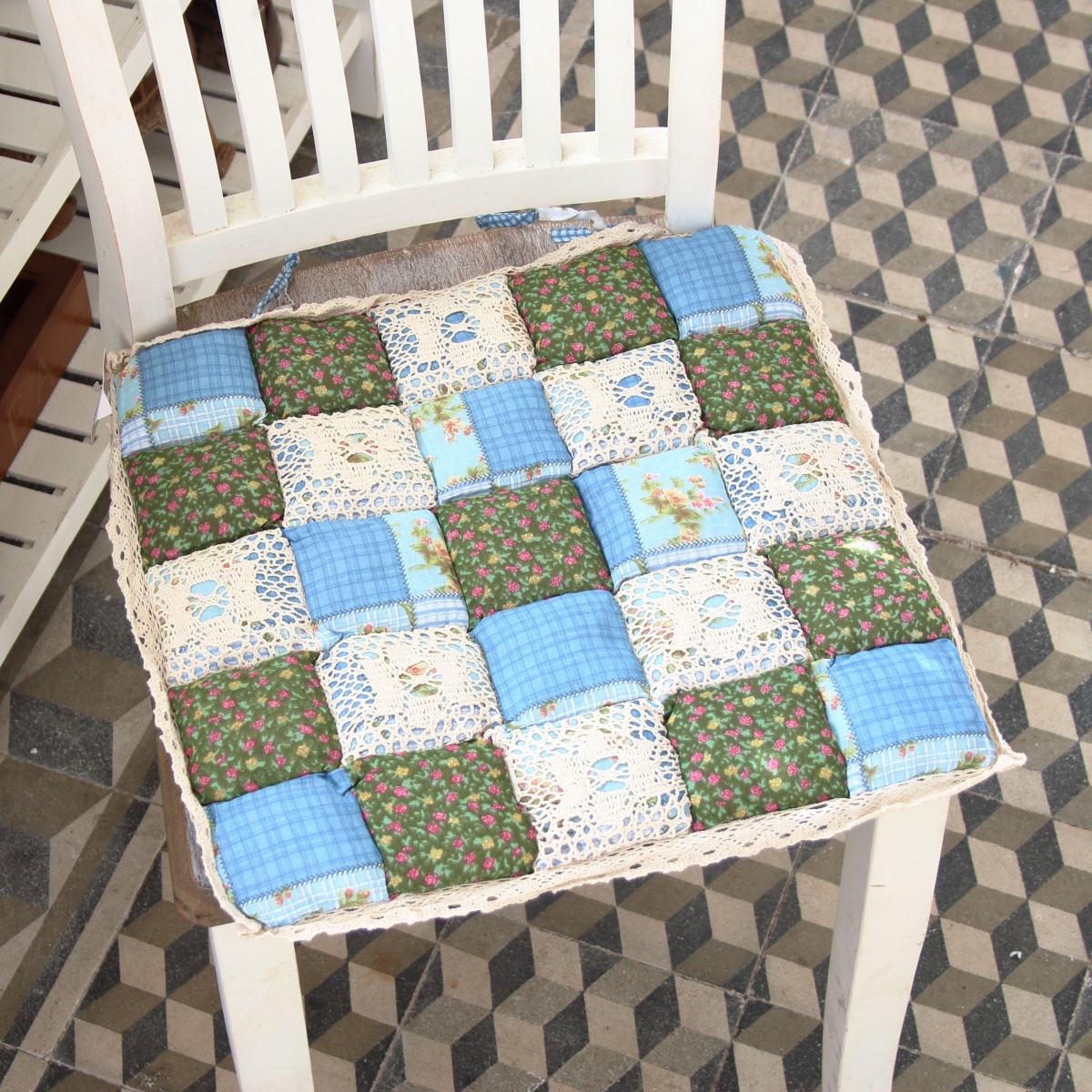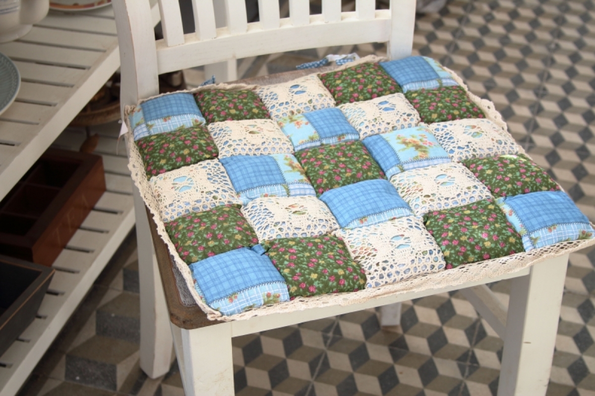 Podsedák na stoličku zelenomodrý 40x40cm v krásnom kockovanom dekore, bude slušiet každej, nielen vidieckej, kuchyni.