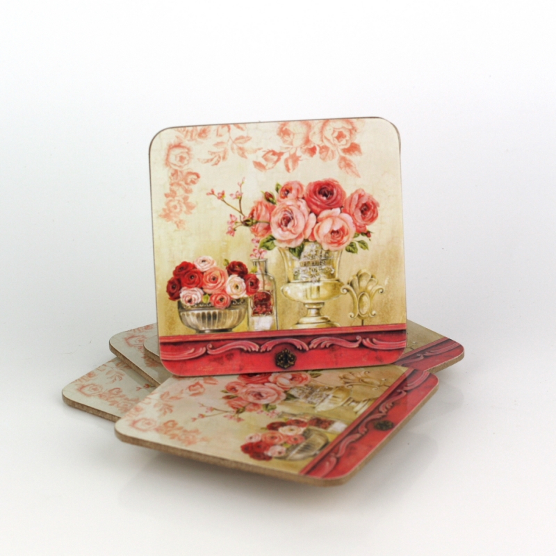 Podtácky pod hrnček (sada 6ks) motív ruže 10x10cm zabráni pohárom s kávou alebo čajom zanechať na stole či obrusu nevzhľadné krúžky.