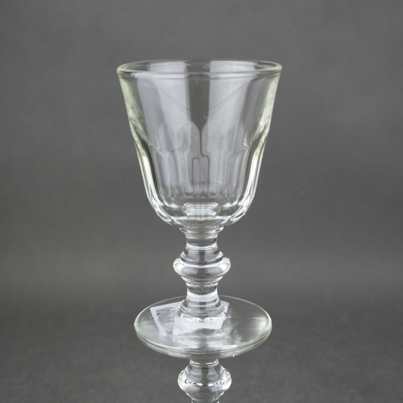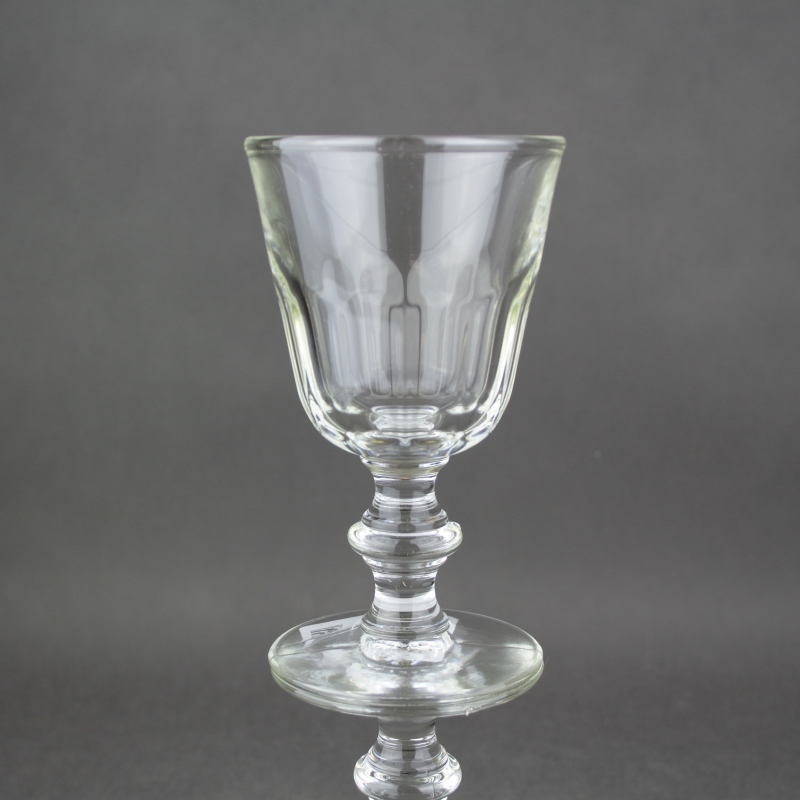 Grand verre a pied en verre pressé, paraison taille côtes plates. Un tres grand classique, daprès les collections du 19eme siecle de la verrerie.