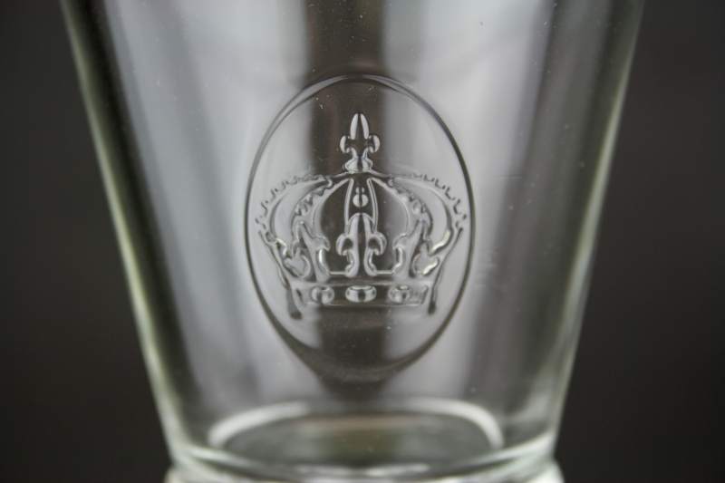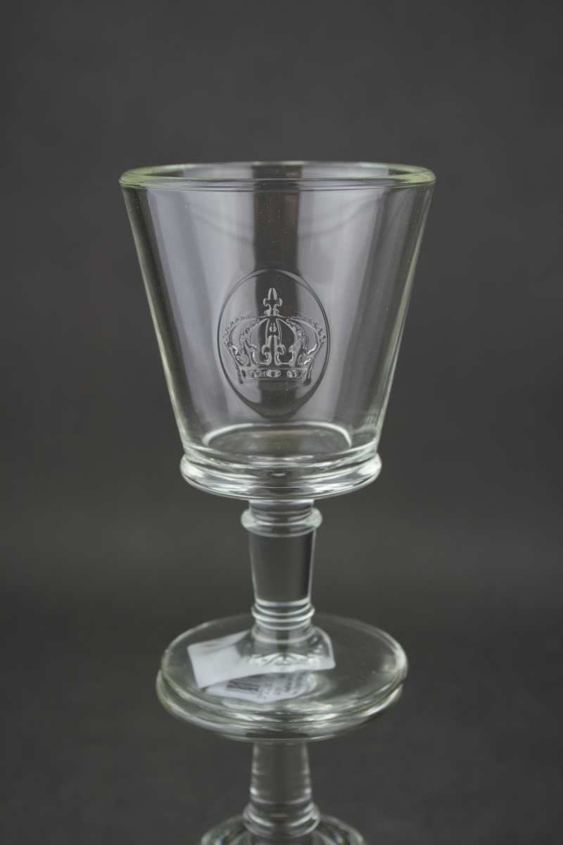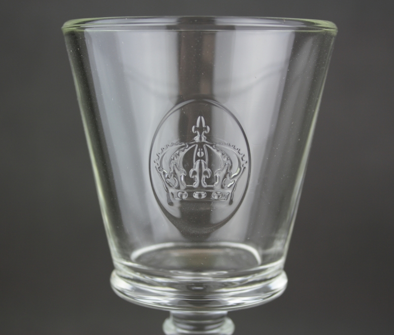 Poháre na víno zdobená medailónom s motívom kráľovskej koruny. Stolové sklo z kolekcie sklárne La Rocher má typický francúzsky šarm. Spolu s riadom vnesiete kúsok Francúzska aj k Vám domov.