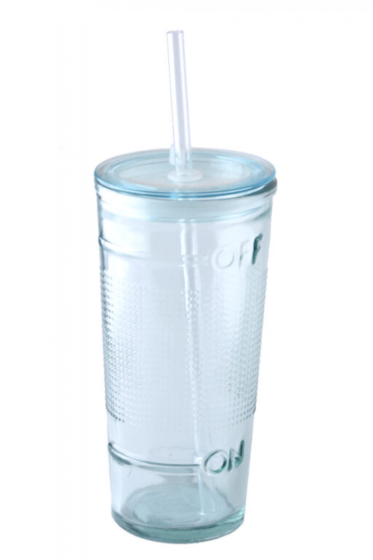 Poháre s viečkom a slamkou OFF AND ON 17x8cm pre príjemné popíjanie domáce limonády bez obáv z vyliatia.