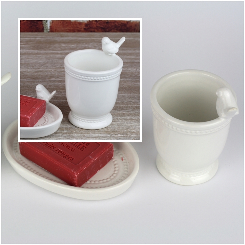 Rozměry: výška 8cm, průměr 6,5cm a výška včetně ptáčka 12cm.