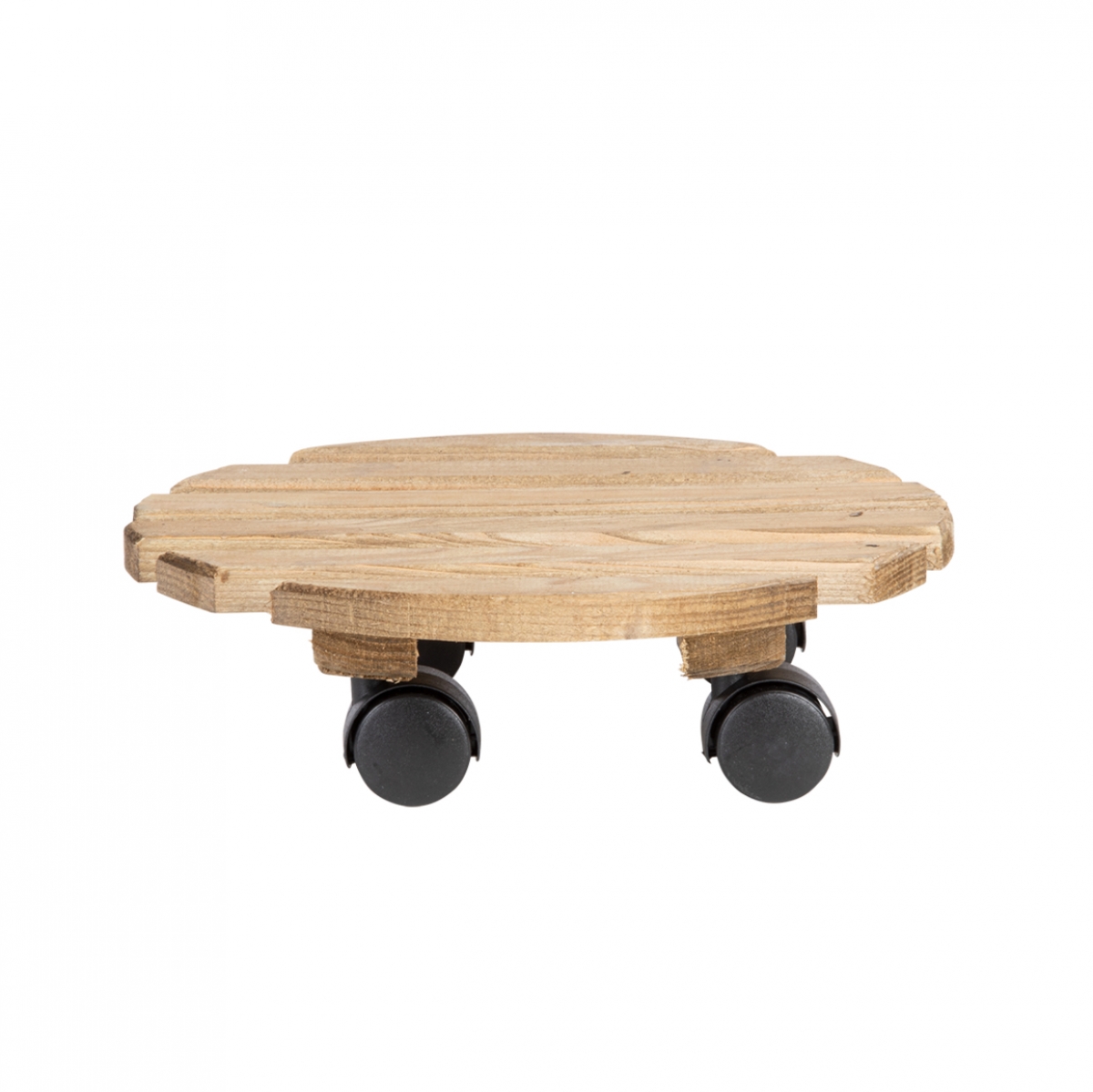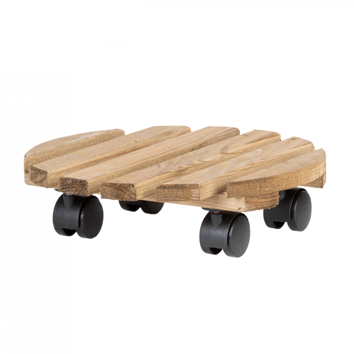 Pojazdný podstavec pod kvetináč s priemerom 28cm v hnedom odtieni.