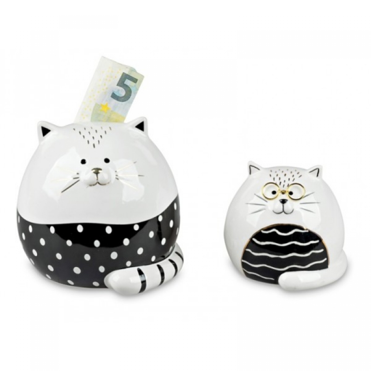 Pokladnička na peniaze v podobe mačky poteší ako darček vašim blízkym, ale iste aj vás samotných. Deti môže naučiť s rozvahou zaobchádzať s peniazmi a do toho všetkého bude krásnym doplnkom do izby. Pokladnica má zdola uzamykateľný otvor na výber peňazí.
