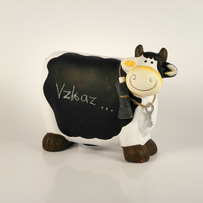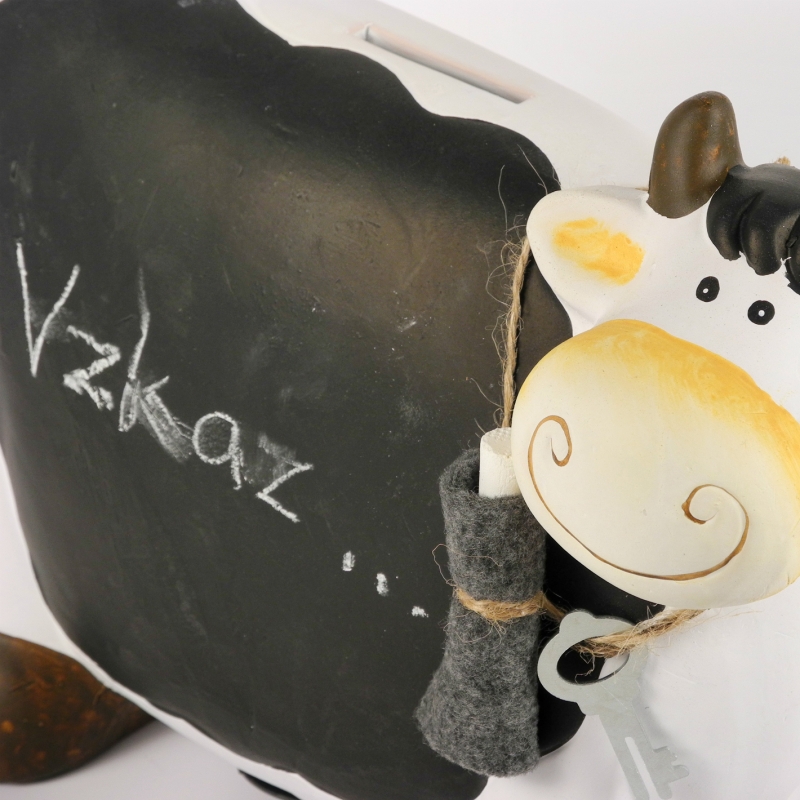 Pokladnička s tabuľkou - krava