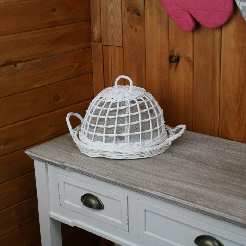 Prútený poklop na potraviny so sieťkou je vhodný na koláče, buchty či pečivo. Podnos aj poklop má praktické ucha na prenášanie a odklápania.