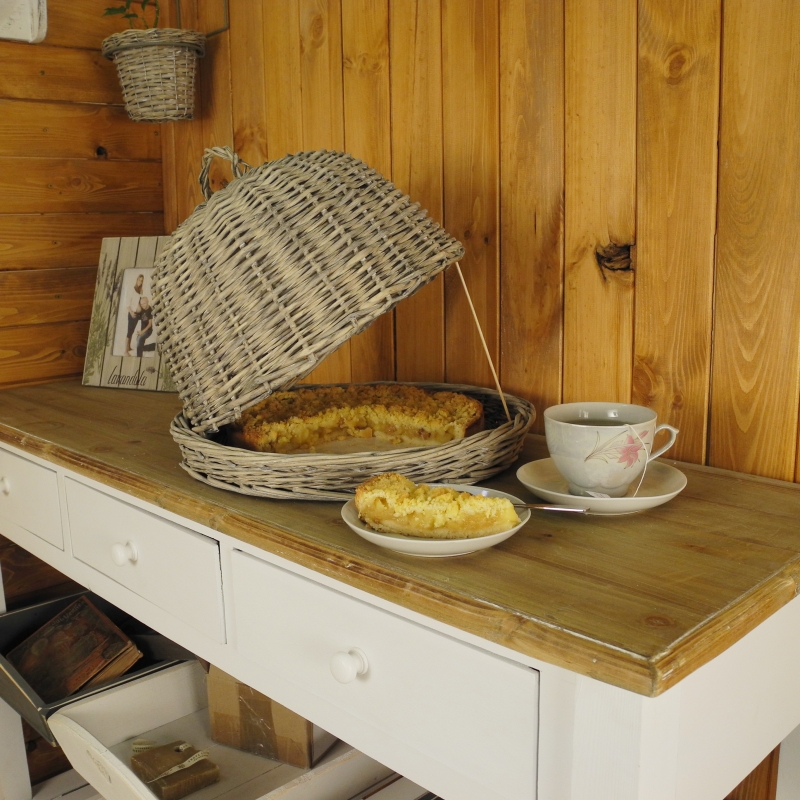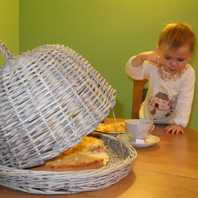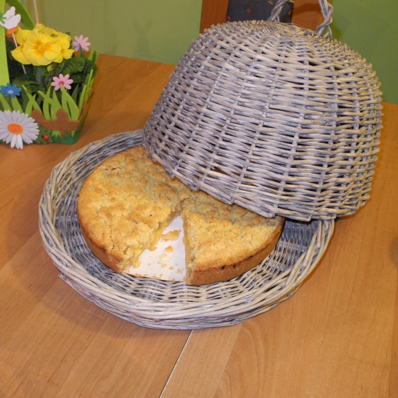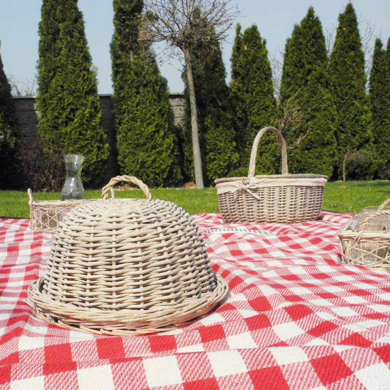 Tento košík s poklopom ukryje bez problémov aj pohostenie pre väčší počet stravníkov -koláč, bábovku či pečivo. Verme že im bude chutiť rovnako ako malé dáme na titulnú fotografiu.