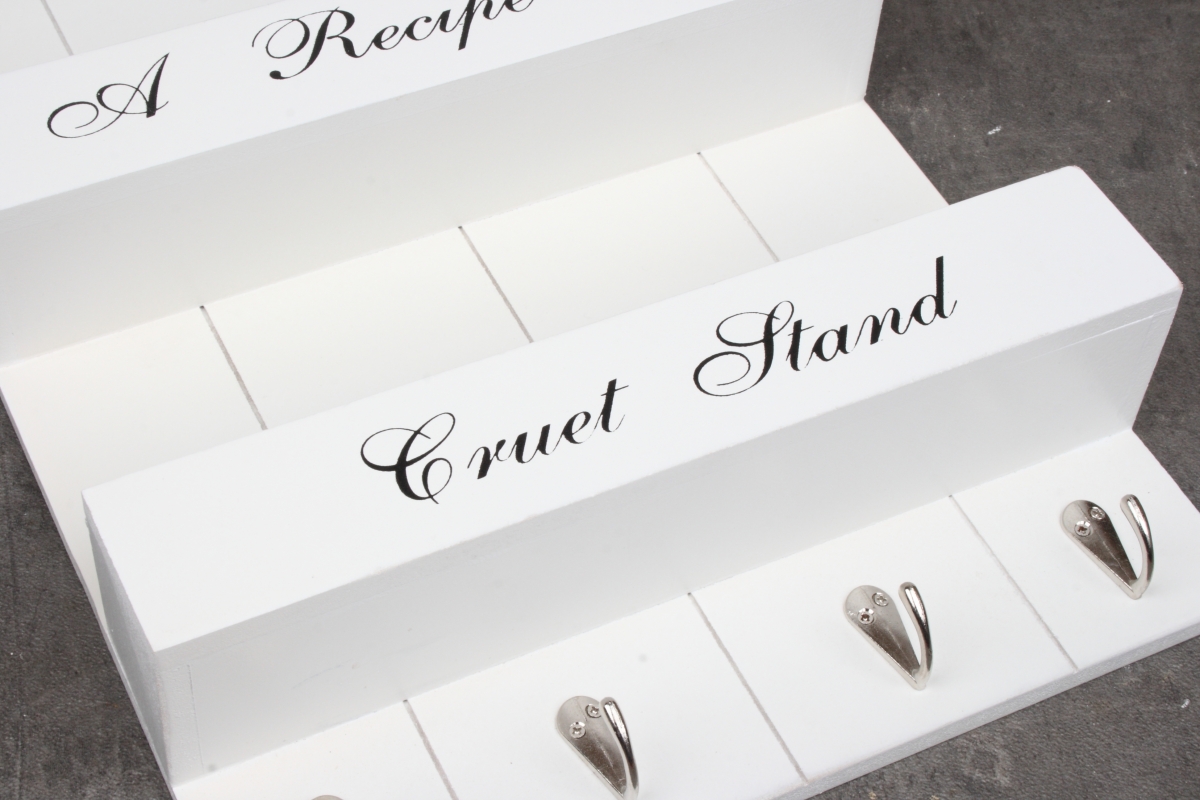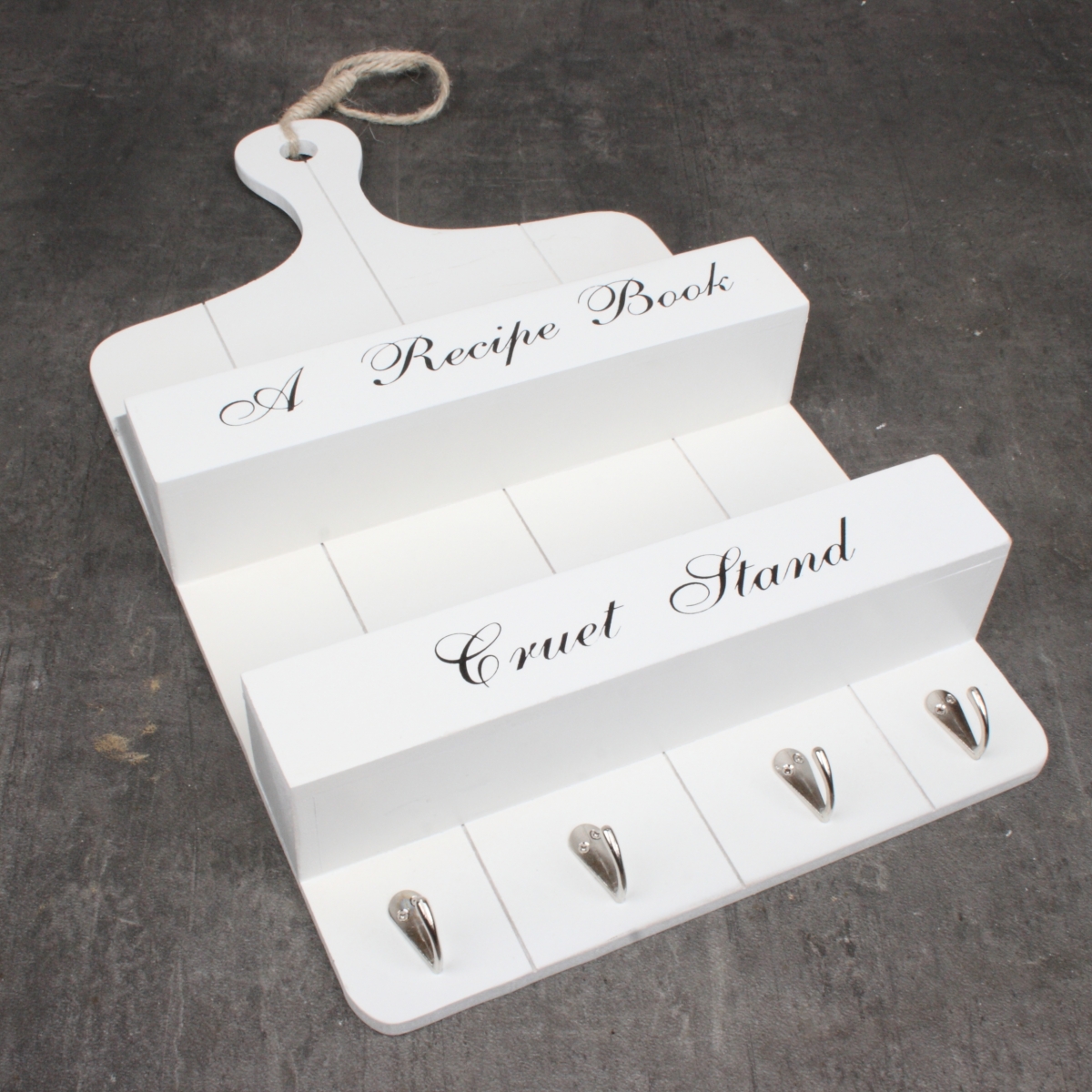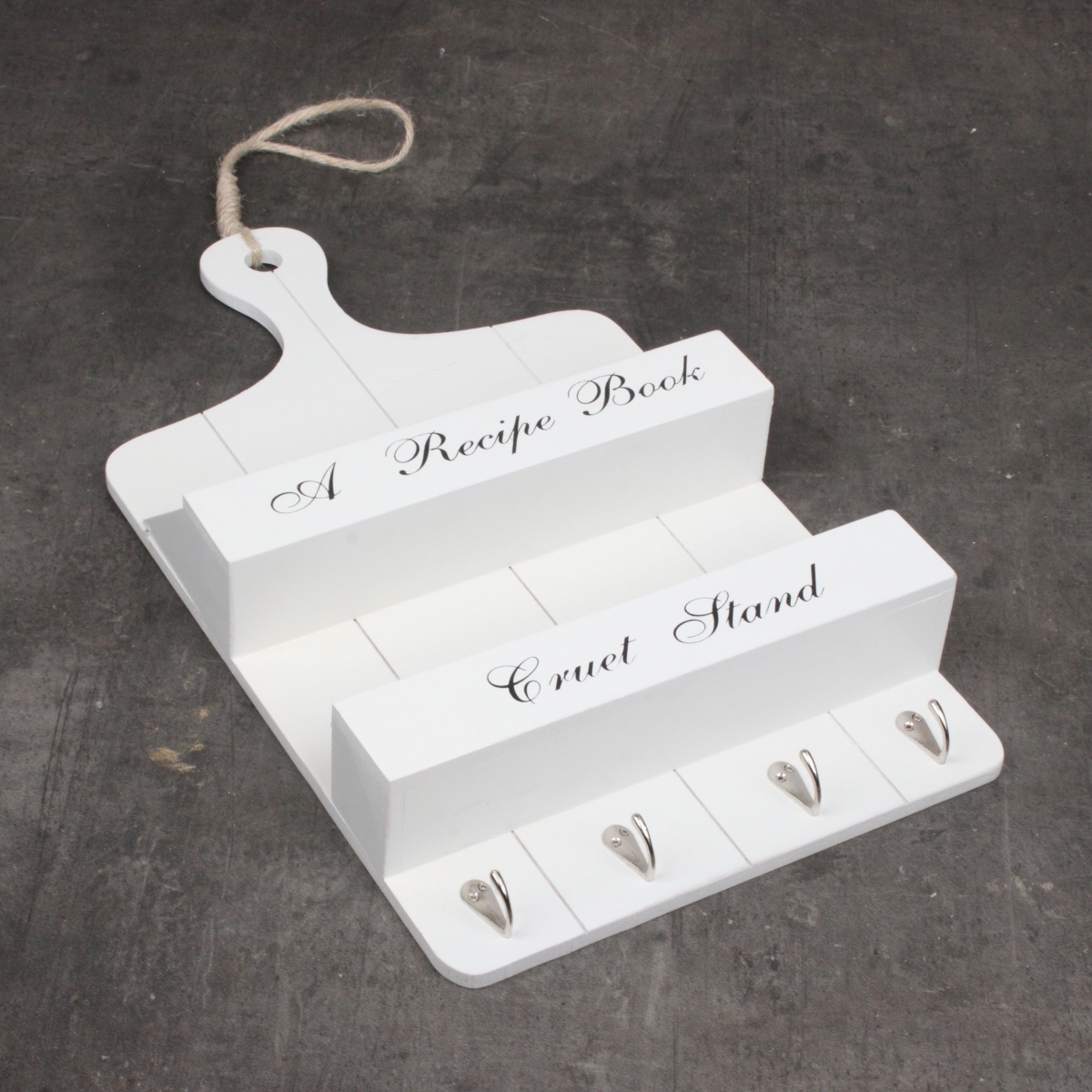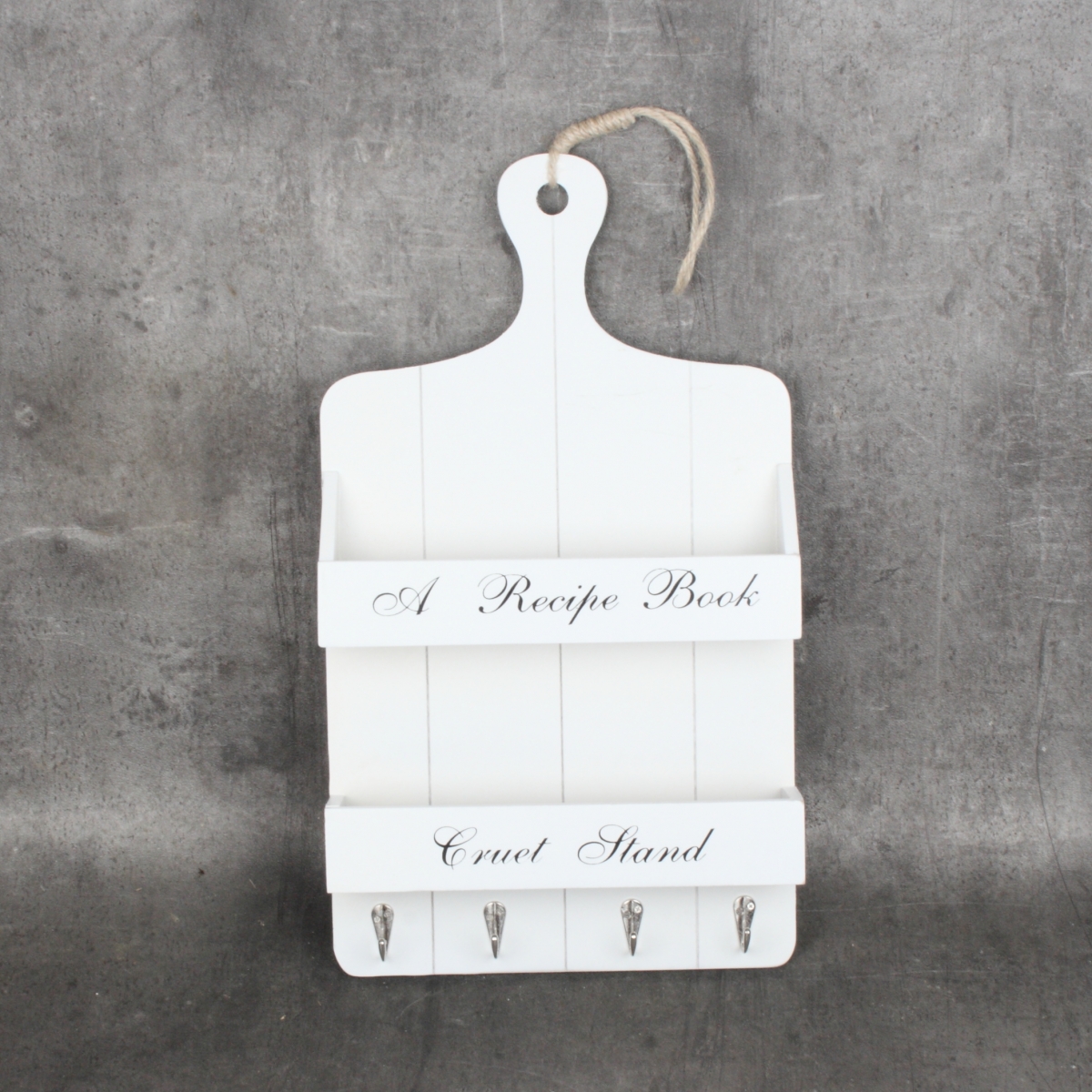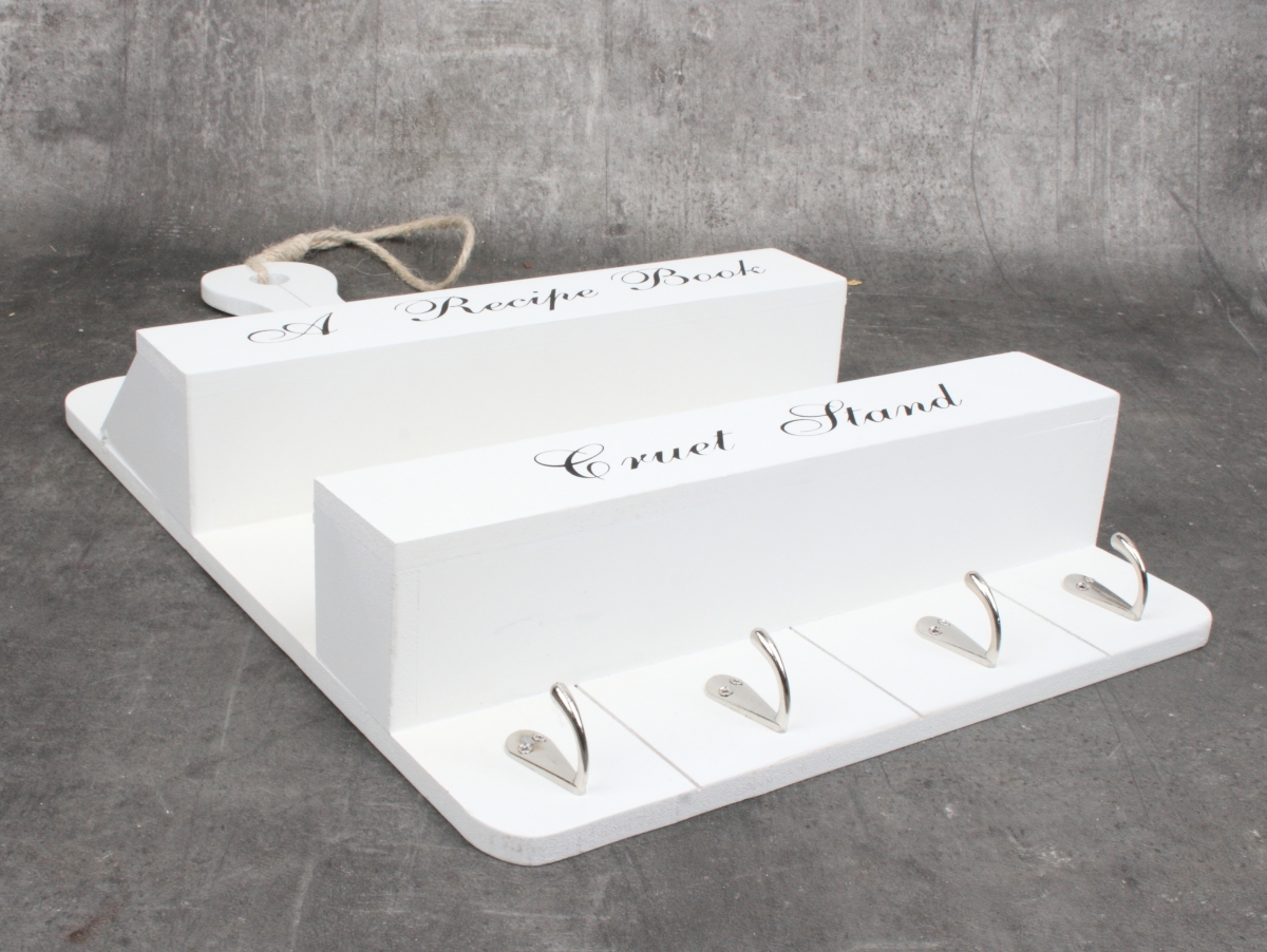 Polica do kuchyne lopárik 28x50x7cm s dvoma poličkami a štyrmi háčiky na kuchynské doplnky.