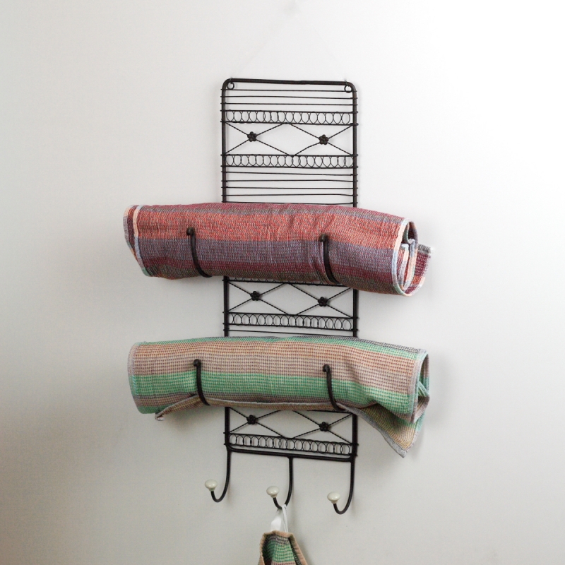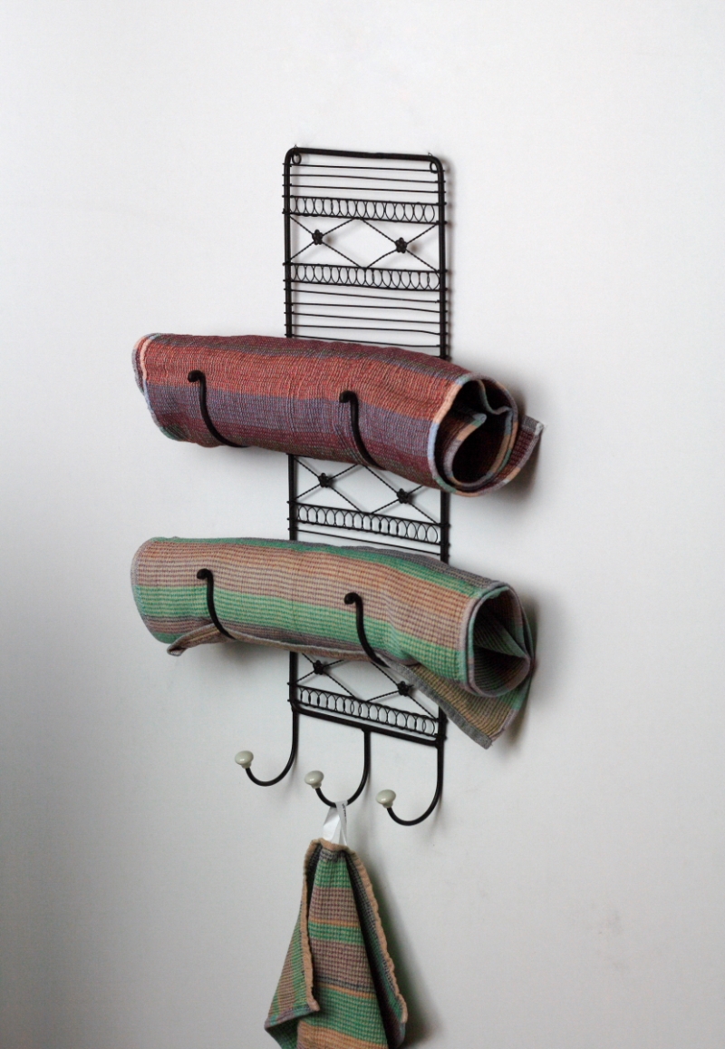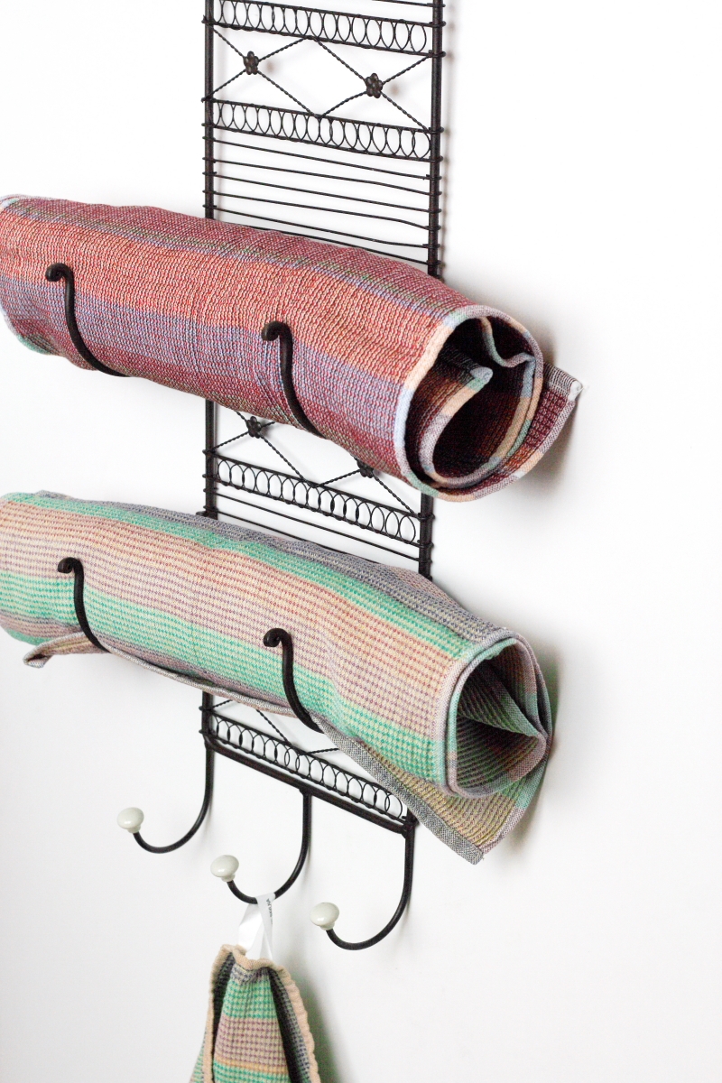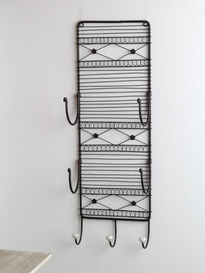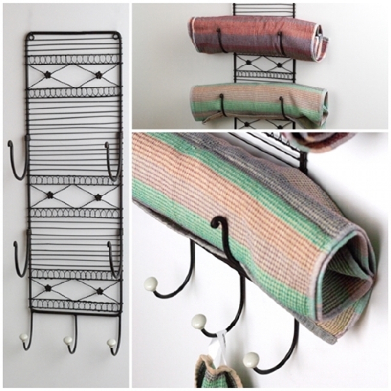Polička do kúpeľne - na uteráky je krásnym štýlovým doplnkom do vintage kúpeľne. Drôtený nástenný panel má priestor na dva malé uteráky, v spodnej časti naviac háčiky na zavesenie ďalších potrebných vecí. Koniec háčikov je ozdobený porcelánovú guličkou. Polička sa ľahko uchytí na stenu za pomoci dvoch skrutiek (otvory v hornej časti).