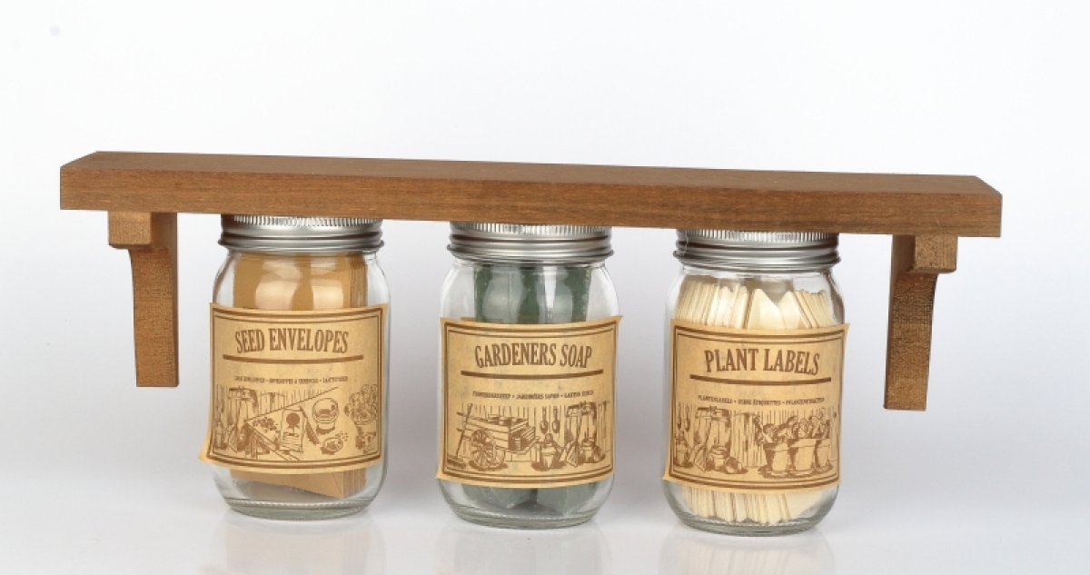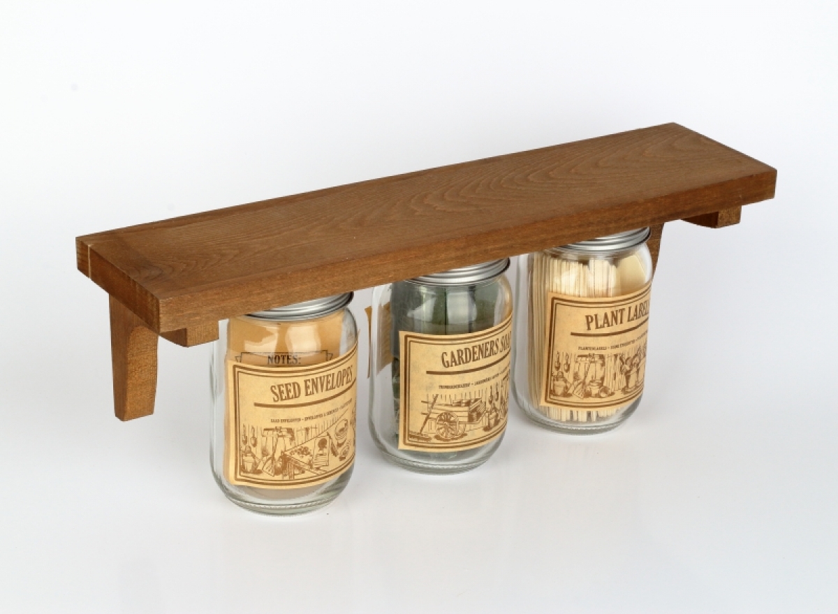 Polička s pohármi so záhradnými doplnkami 39,5x10,0x15,3cm je ideálna pre každú záhradný dielňu alebo domček.