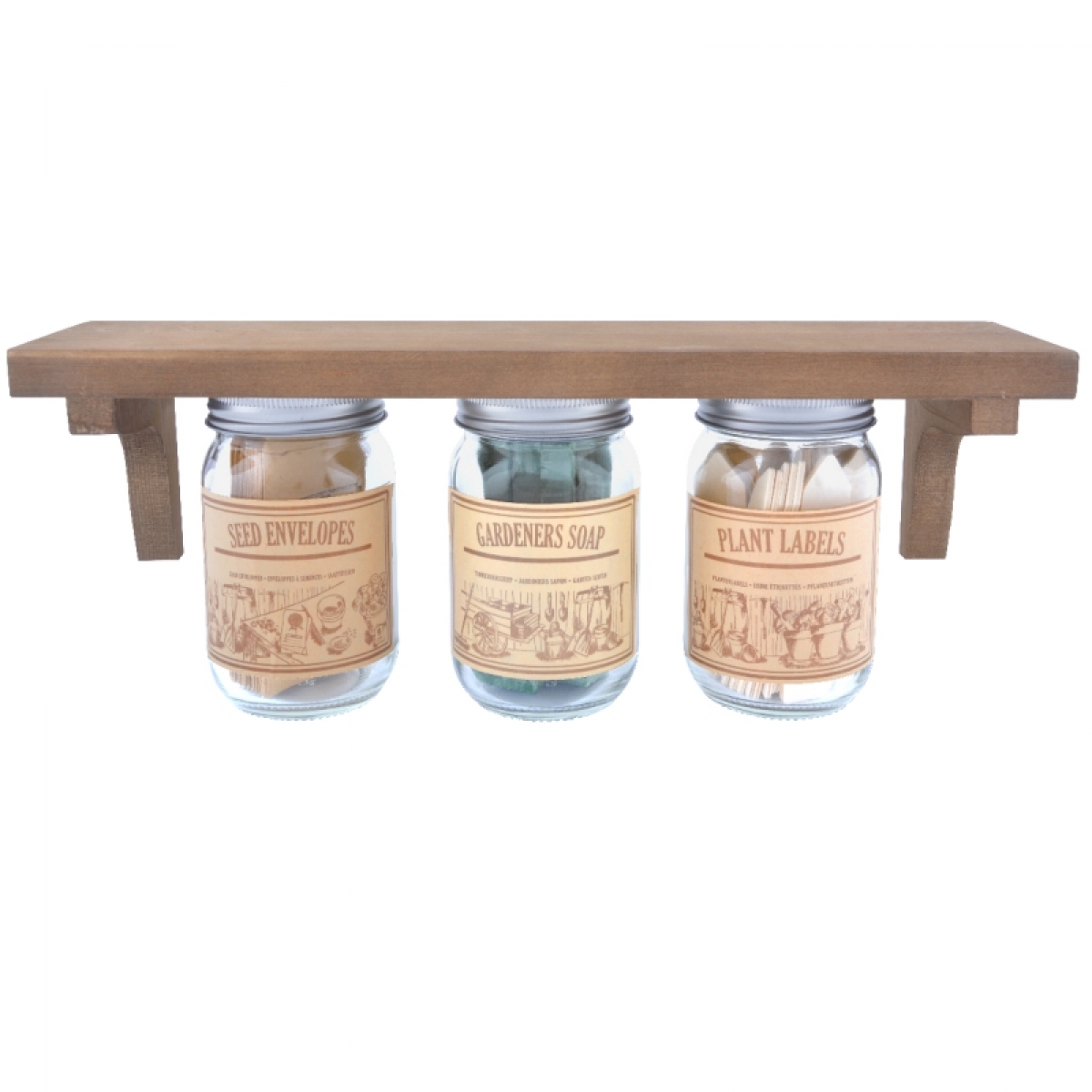 Polička s pohármi sa záhradnými doplnkami 39,5x10,0x15,3cm