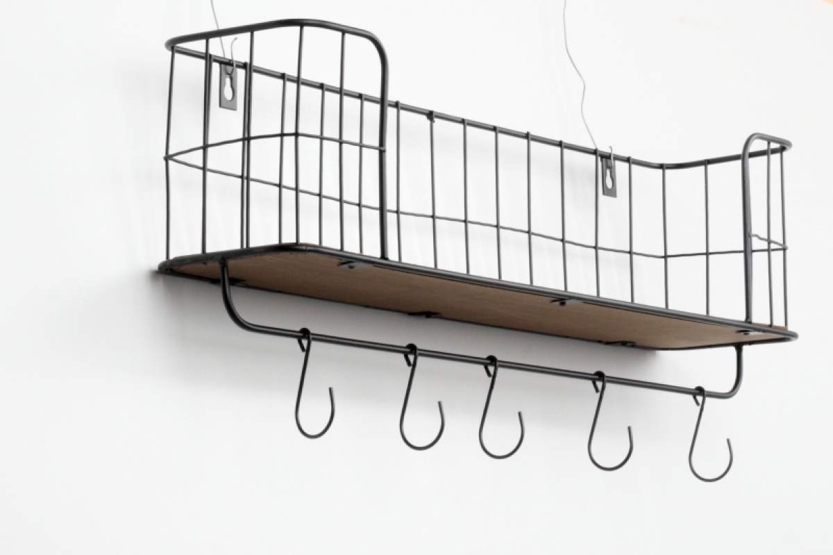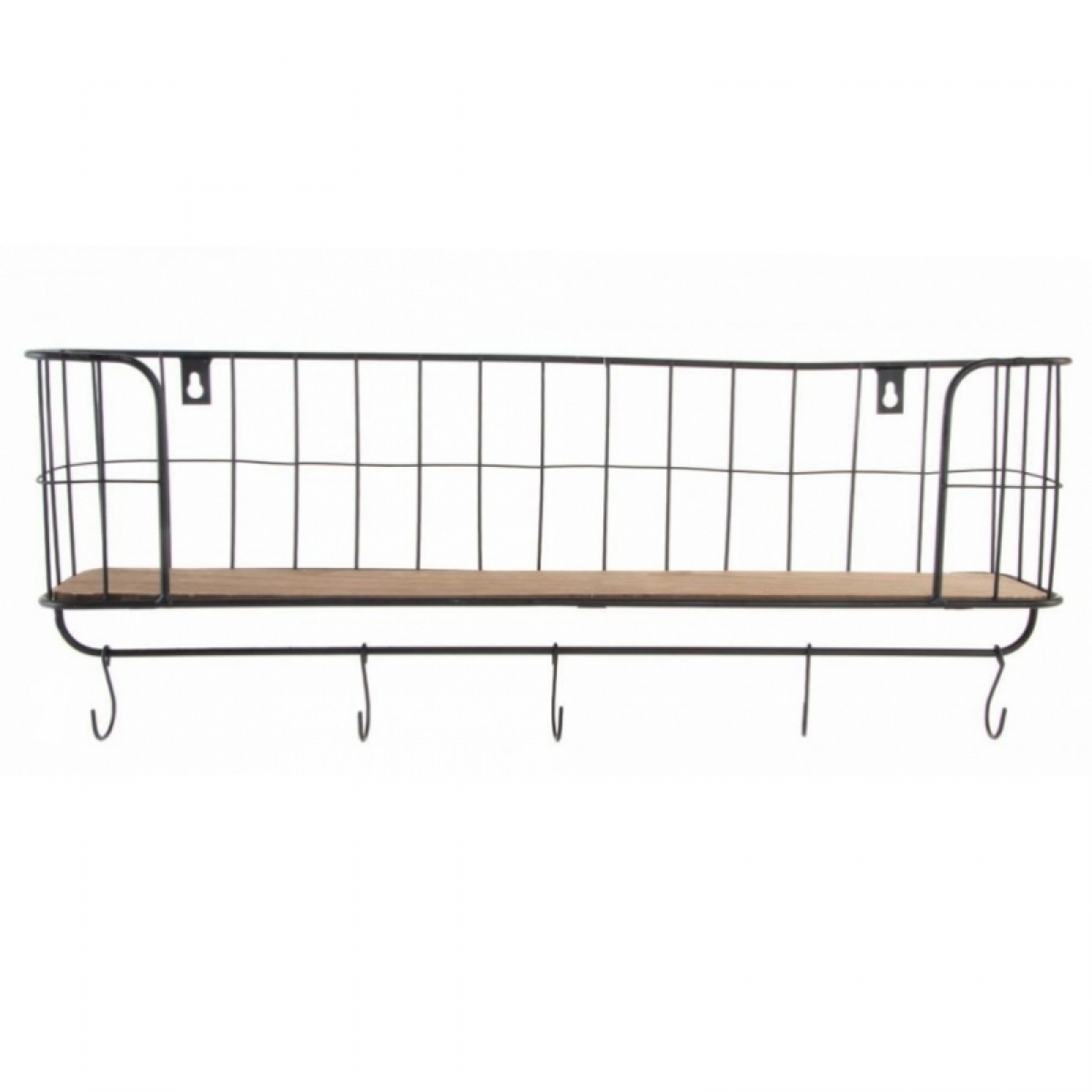 Polička v industriálnom štýle 60x12x18cm je vydarenou kombináciou dreva a kovového materiálu. Polička má navyše 5 praktických háčikov a hodí sa do kuchyne i kúpeľne.