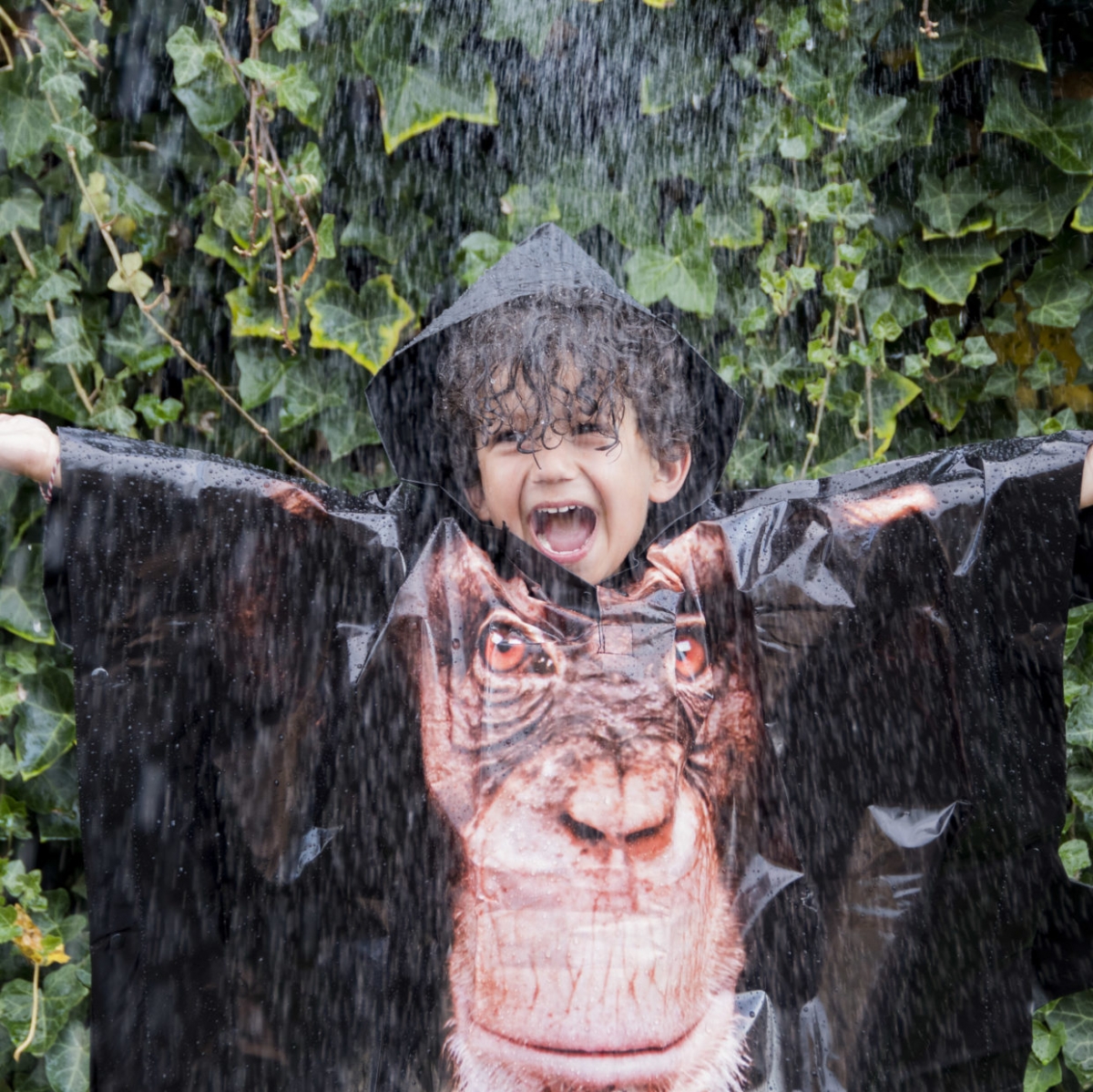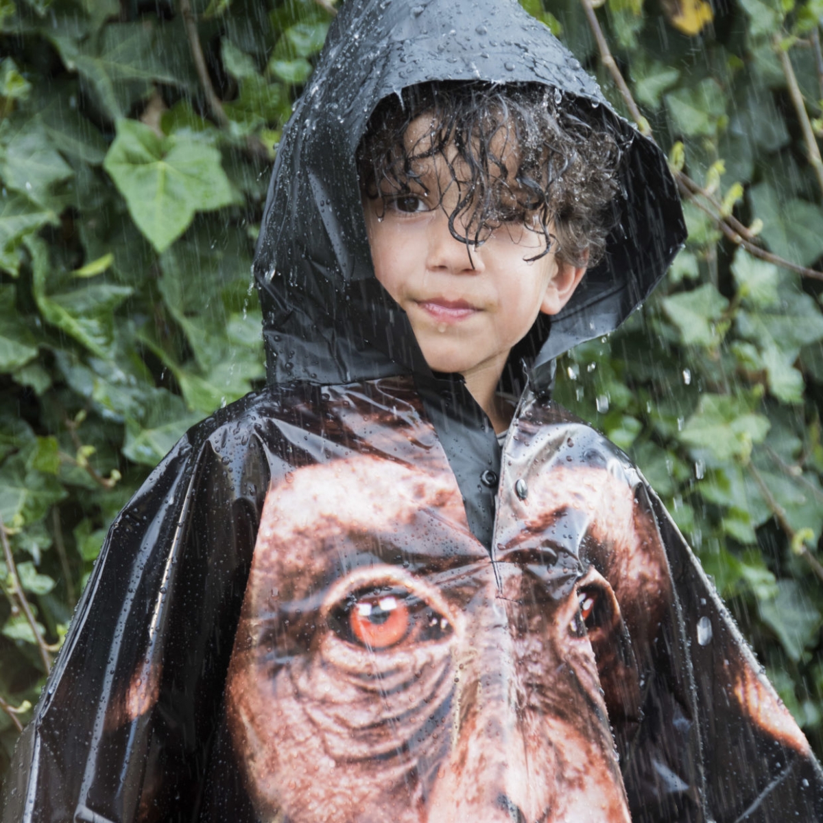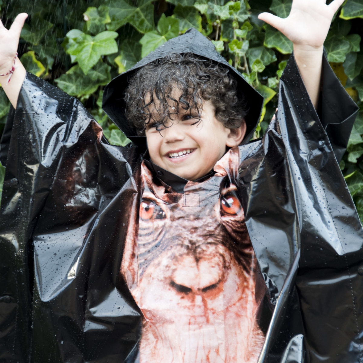 Pončo pláštenka vhodná pre deti je opatrená kapucňou a rozepínacím výstrihom na 2 plastové Zacvakávacie gombíky.