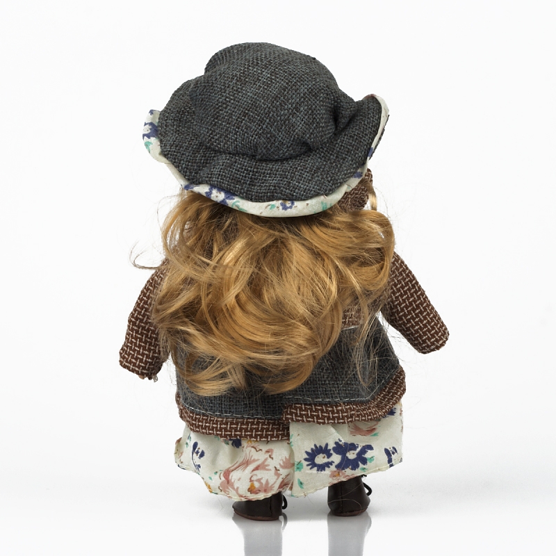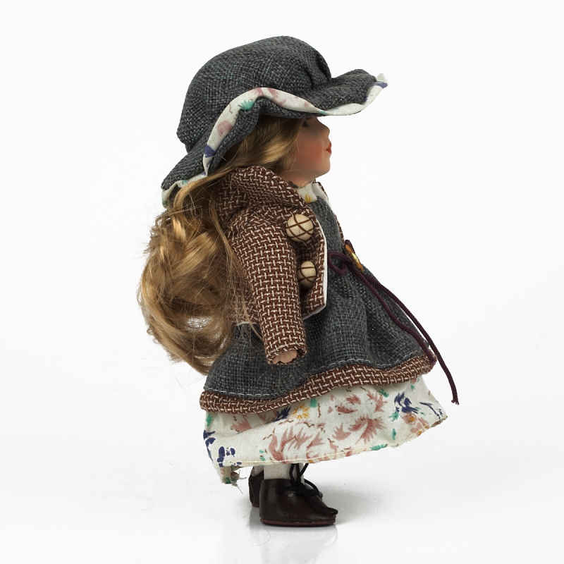 Porcelánová bábika modrý klobúk a zástera 20cm